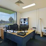The office accommodation comprises open plan space and a separate executive office with carpeted floors, recessed fluorescent lighting and ducted air conditioning, kitchenette and toilet facilities. The warehouse has a truss height of approximately six metres with a roller door to the rear elevation along with a separate warehouse toilet.