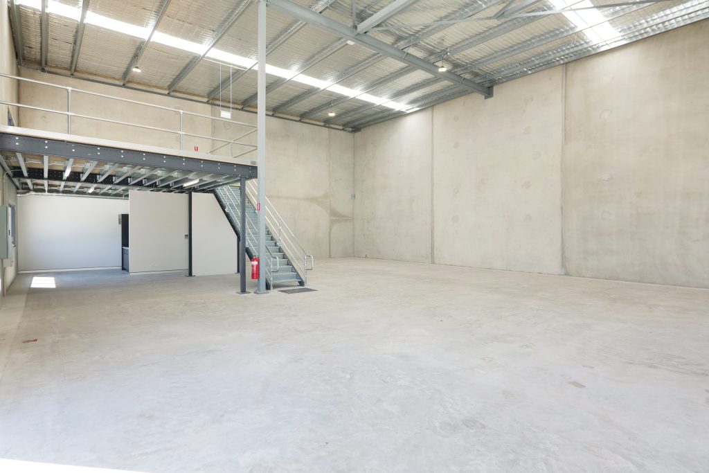 Situated on a corner position within the development, the unit is built of concrete floors, footings and tilt-panel elevations. A mezzanine of circa 50 sqm provides additional storage capacity on the second level. A UAT and kitchenette are present on the ground floor as well as LED lighting and three-phase power supplied to the premises. A large roller door is present on the front elevation allowing for excellent access.