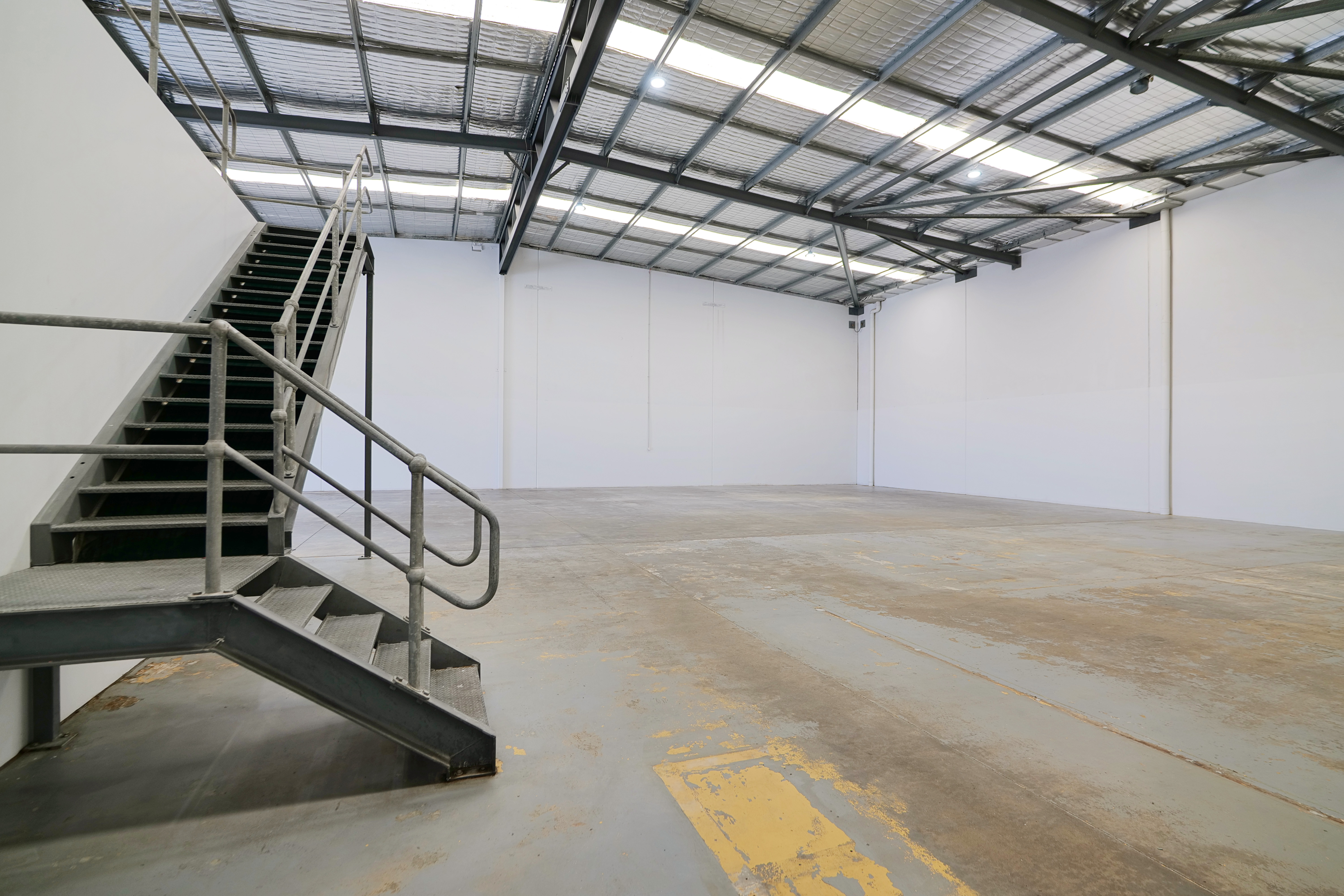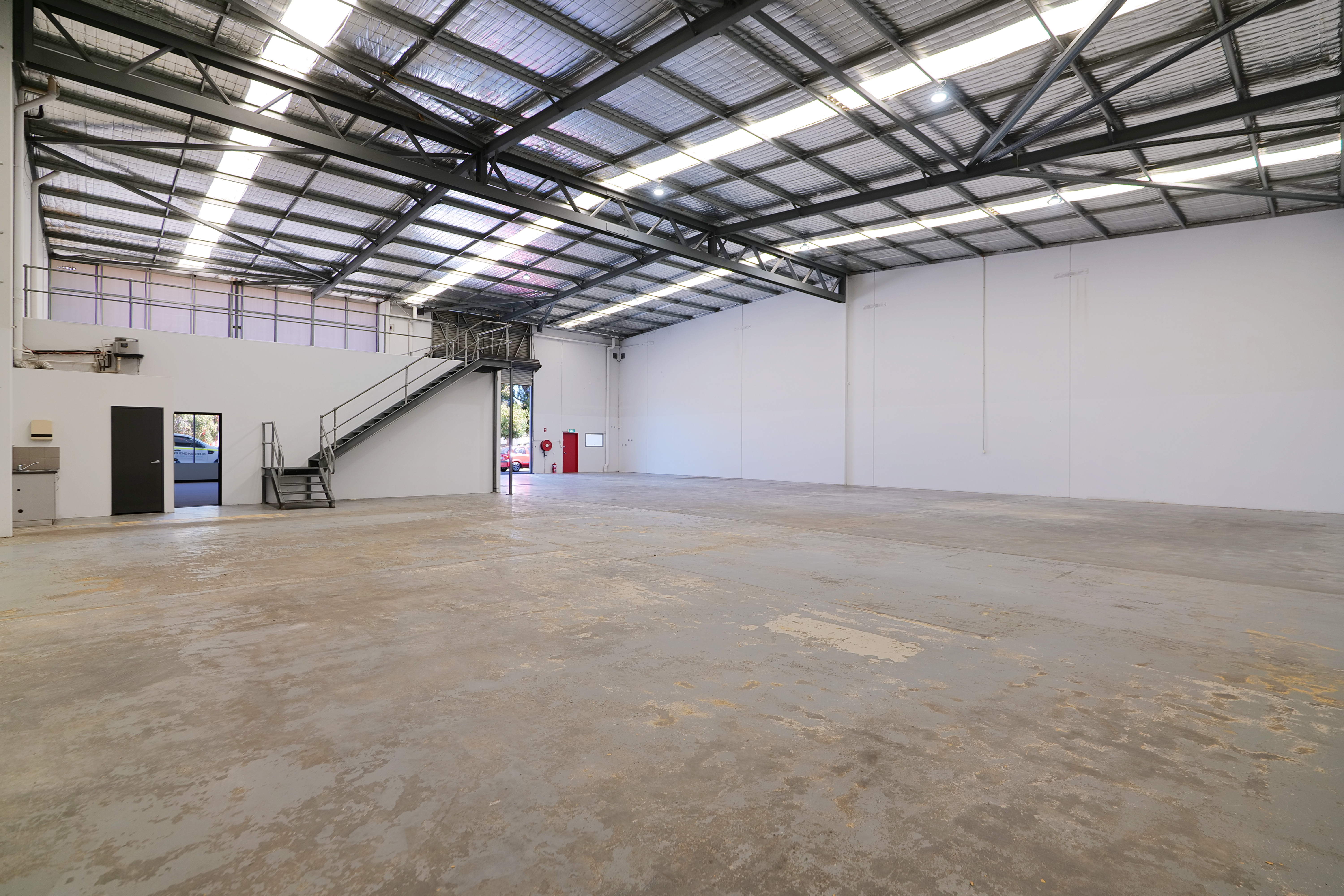 At the rear of the offices within each unit's warehouse are the amenities which include two toilets (one disabled) and a tea preparation area. The warehouses are clear span and accessible via one roller door for each unit at approx. 5m x 5m. Internally, the warehouses have concrete floors, truss height of 7.1 metres, 3-phase power and an additional concrete mezzanine above the offices which are accessible via external staircases.
