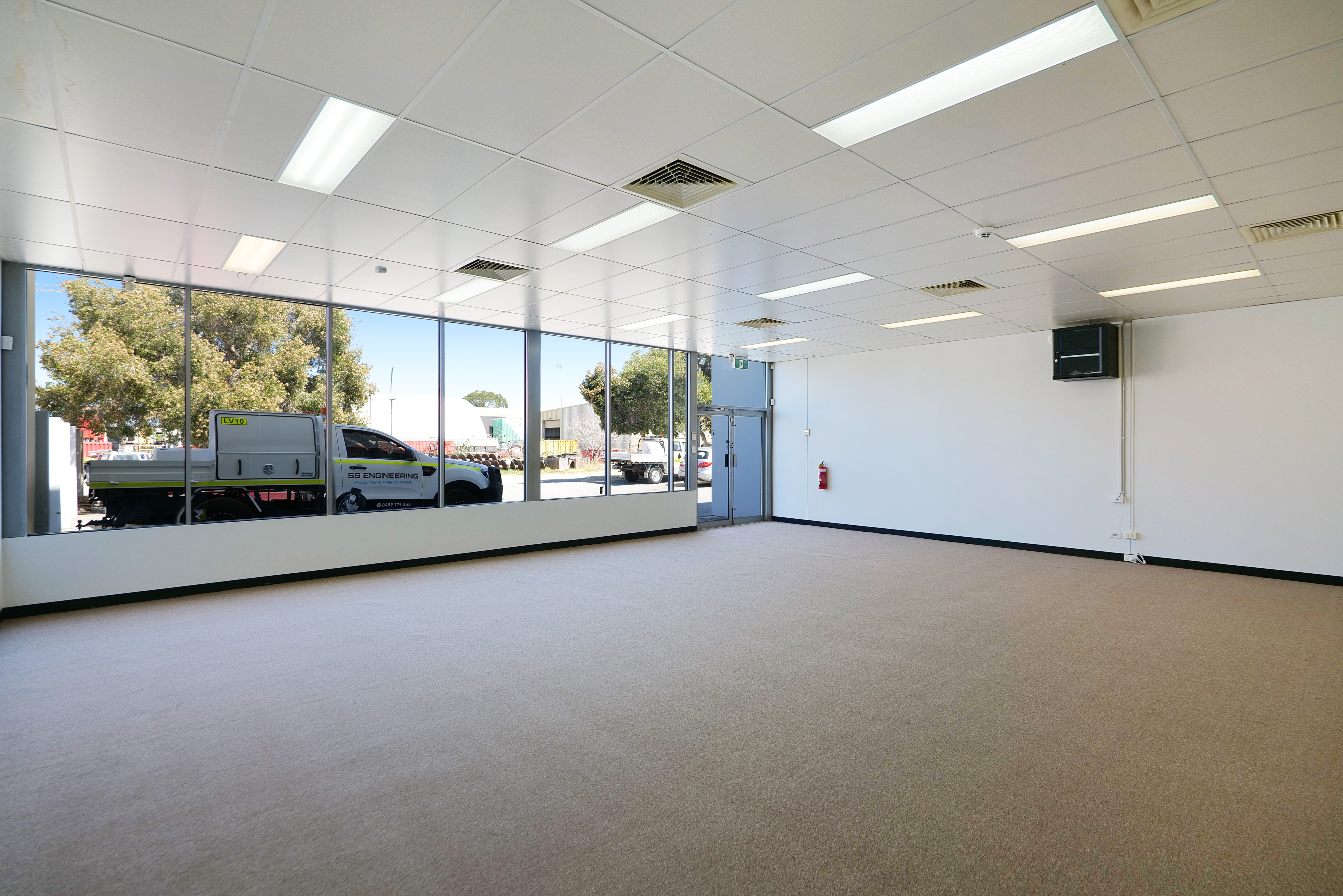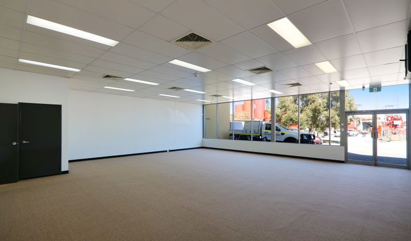 This Office/Warehouse facility consists of concrete tilt up panel walls and concrete floors as well as a metal clad roof. The ground floor offices include concrete floors, painted concrete walls, an open plan design with carpeted floor coverings, suspended ceilings with recessed lights, and reverse cycle air-conditioning.