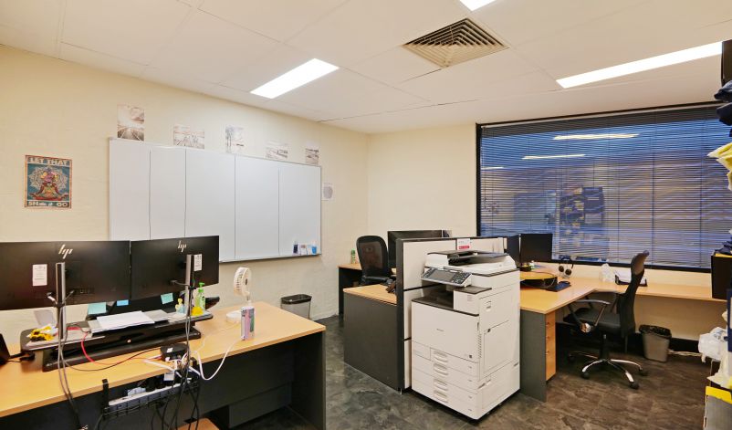 Situated at the rear of the lot, the office comprises 717 sqm over two-levels, featuring a combination of open plan and partitioned offices. A reception area is present on the ground floor, along with two boardrooms, toilets and multiple cubicles. The first floor also comprises open plan accommodation and multiple cubicles. A kitchenette with lunchroom is present as well as multiple toilets. The workshop is located at the front of the development and has access via a front roller door which is approximately 5.9m wide and 5m high and a side sliding door which is circa 7.3m wide by 4.75m high. A 10t Gantry crane can travel the length of the workshop. Air lines and power are throughout the workshop which is also clear-span. Further features include:
