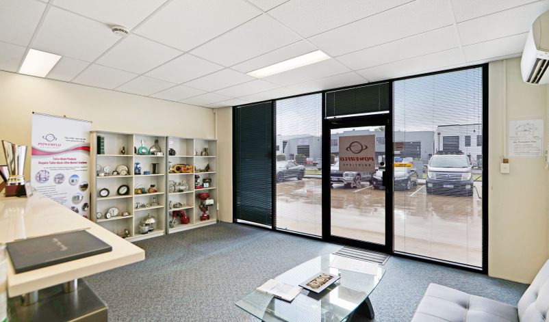 The showroom / office / warehouse unit is constructed with concrete floors and footings, concrete tilt walls, with a steel frame and metal clad roof. The showroom area is situated to the front of the warehouse on the ground floor and is fitted with commercial grade aluminum windows and entry.