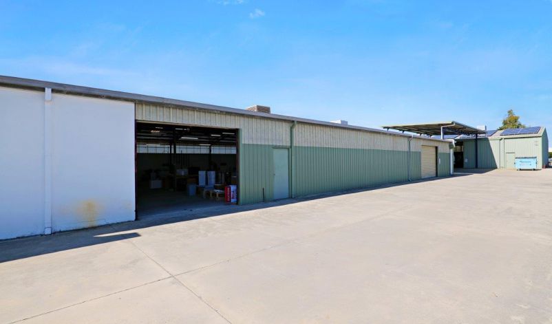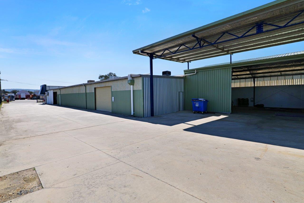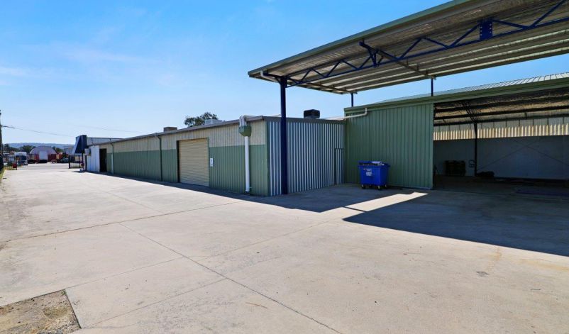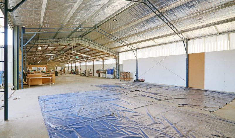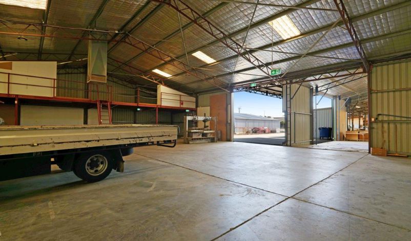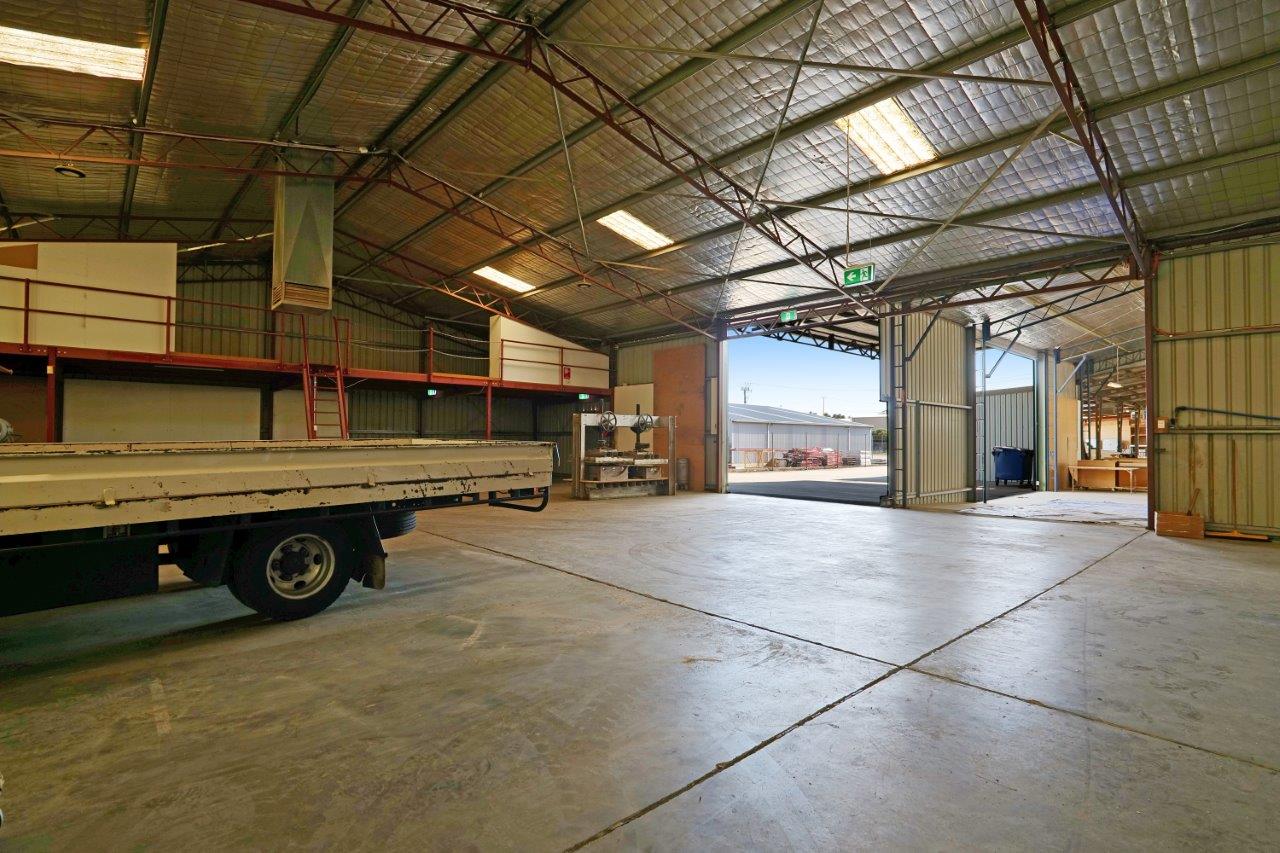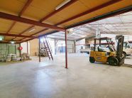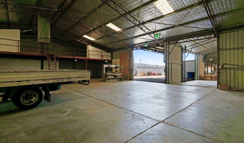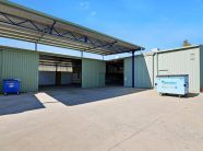 The warehouse accommodation is comprised of three compartments to a total area of 1,073 sqm, the main of which is 589 sqm. They are built from concrete floors and footings, metal clad walls and iron roof. There are a total of four roller doors servicing all compartments, with two servicing the main compartment and the remaining two servicing each other compartment. The rear compartment is 384 sqm and has its own ablutions plus two mezzanines. There is a small canopy allowing for all weather loading/unloading.