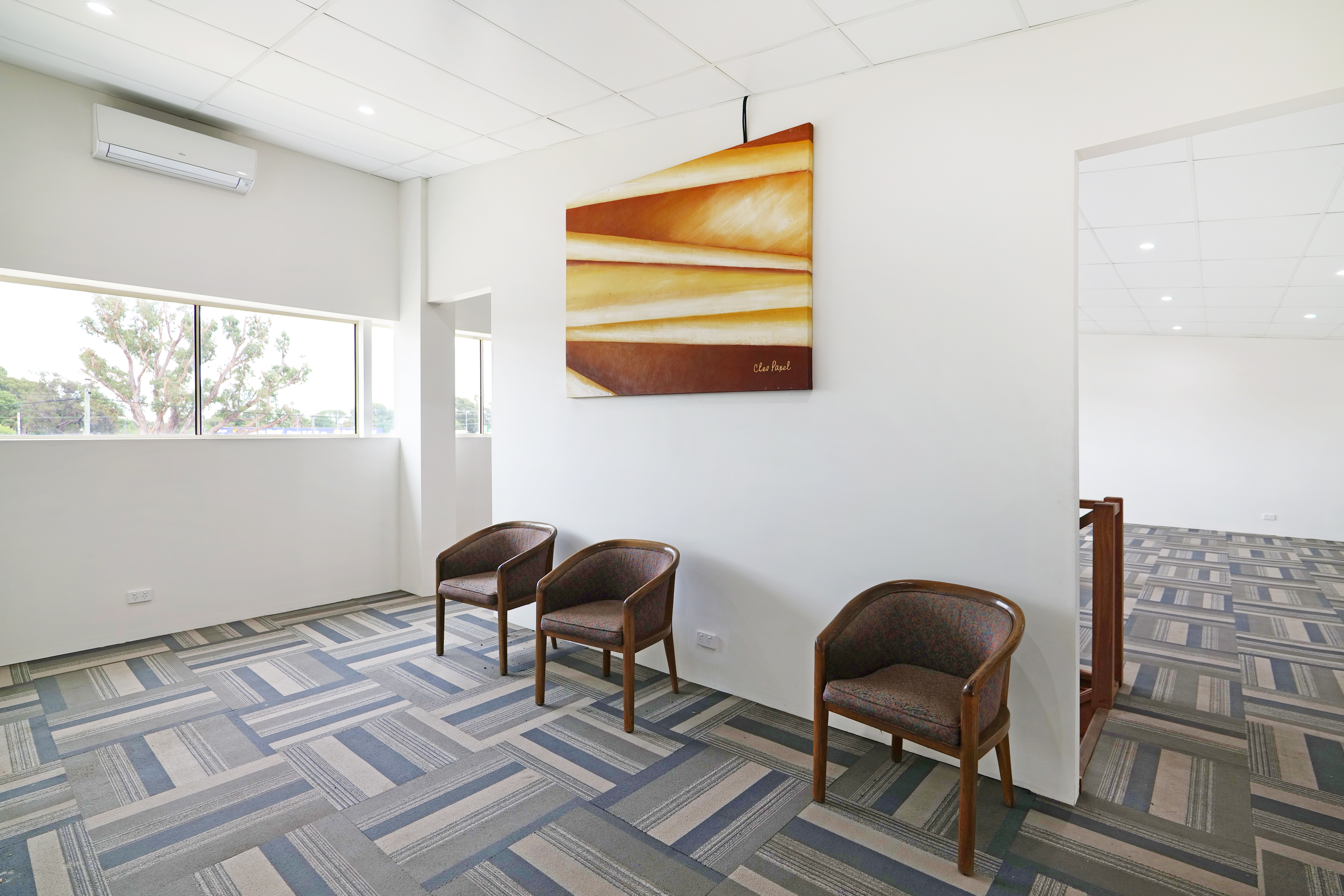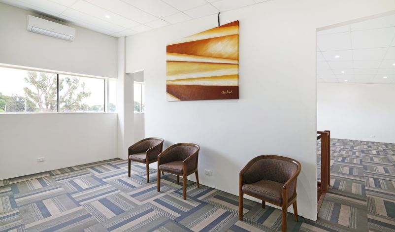 The office space is constructed over two-levels from brick elevations and features carpeted floors, air-conditioning, reception area and separate offices. A kitchenette and lunchroom are also present.