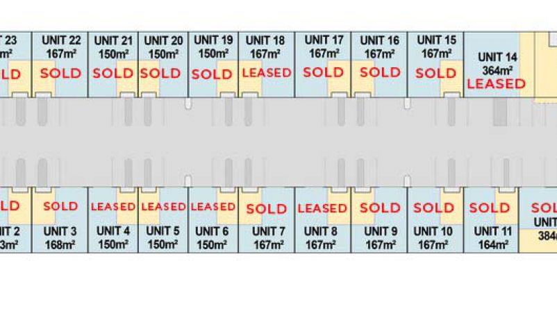 Limited investment opportunities remain, with sizes starting from 120sqm of warehouse plus 30sqm concrete mezzanine and each unit includes a kitchenette and toilet(s) with electric remote roller door.