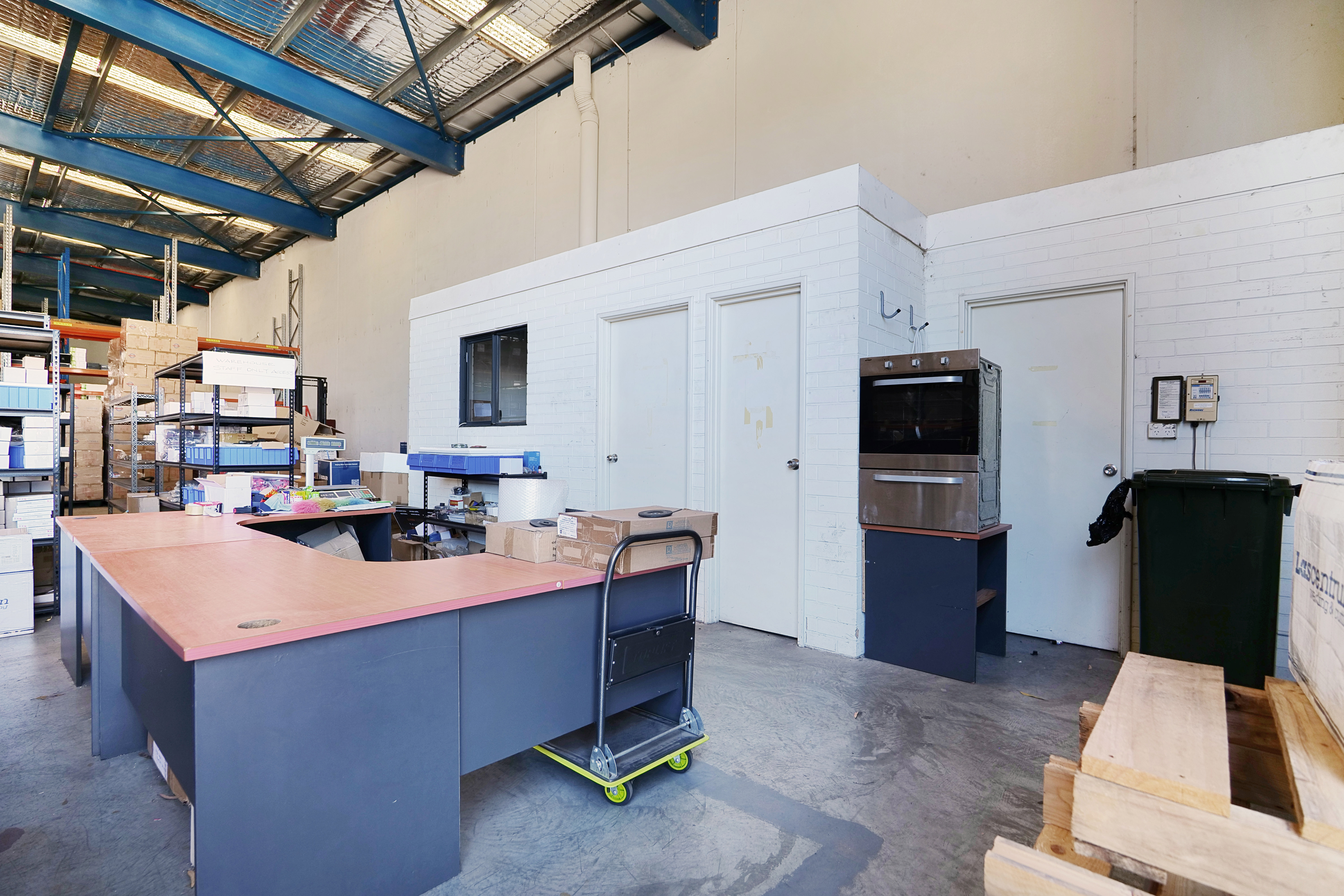 The warehouse is constructed of concrete floors and footings, concrete tilt panel walls, is completely clear-span and is rectangle in shape. Access is available via three roller doors, one on the front elevation and two at the rear allowing for a complete drive-through capabilities. The rear yard/parking is secured with fencing and gates. We have been informed that a 30kw PV system (approx.) is located on the roof.