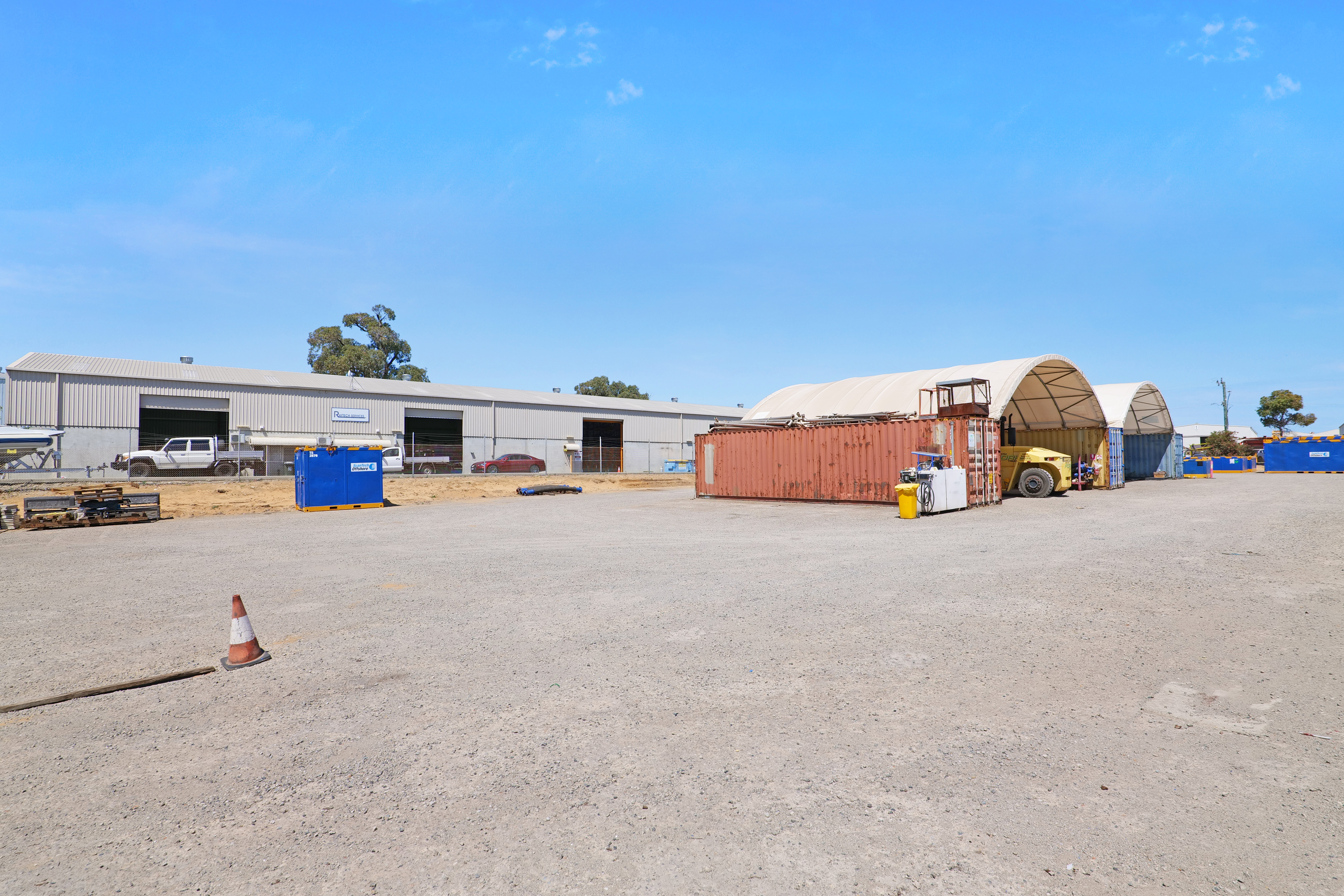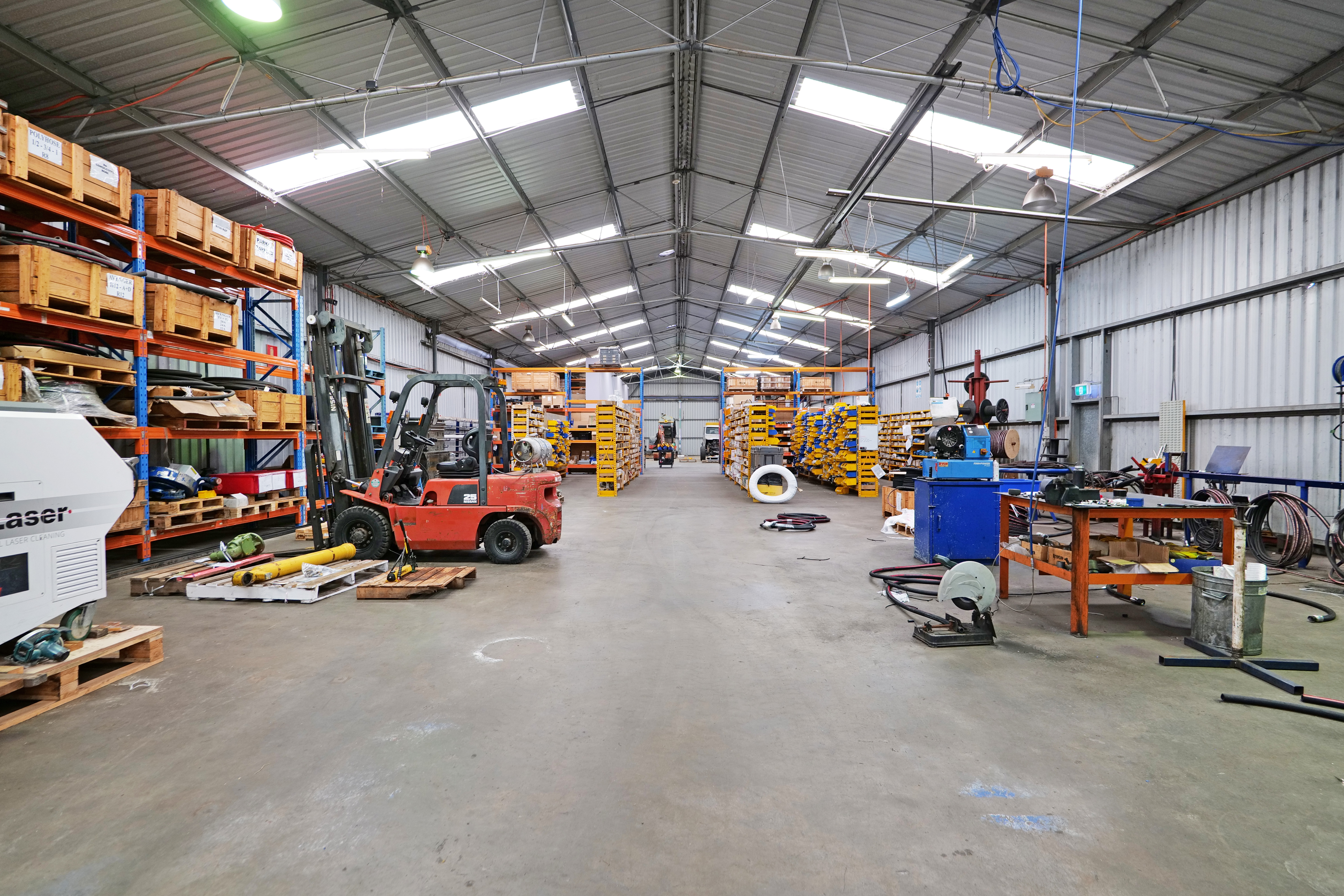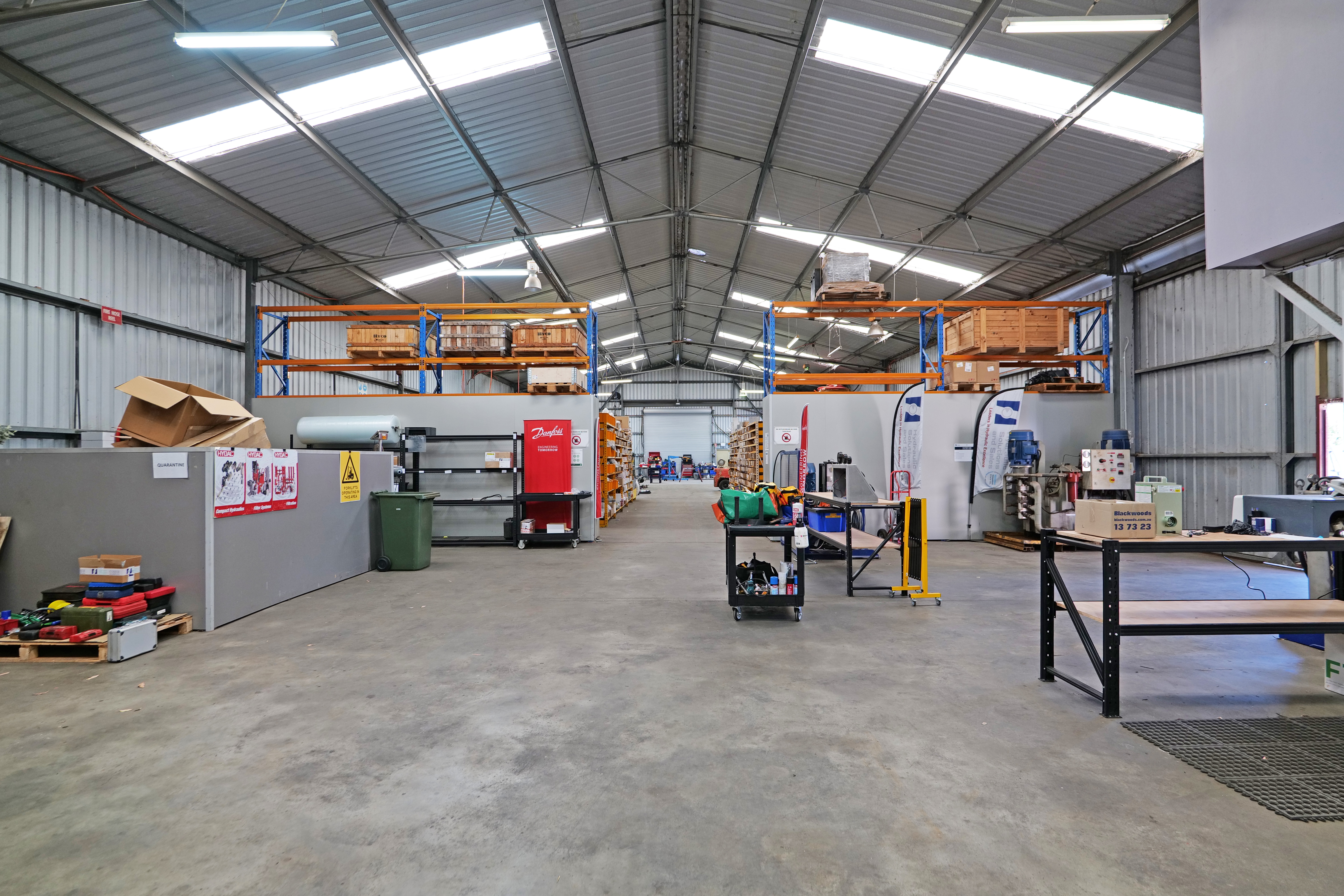 This area includes 3 separate units ranging in area of 255 sqm to 560 sqm. All constructed from concrete floors, concrete walls to dado height and metal clad walls.