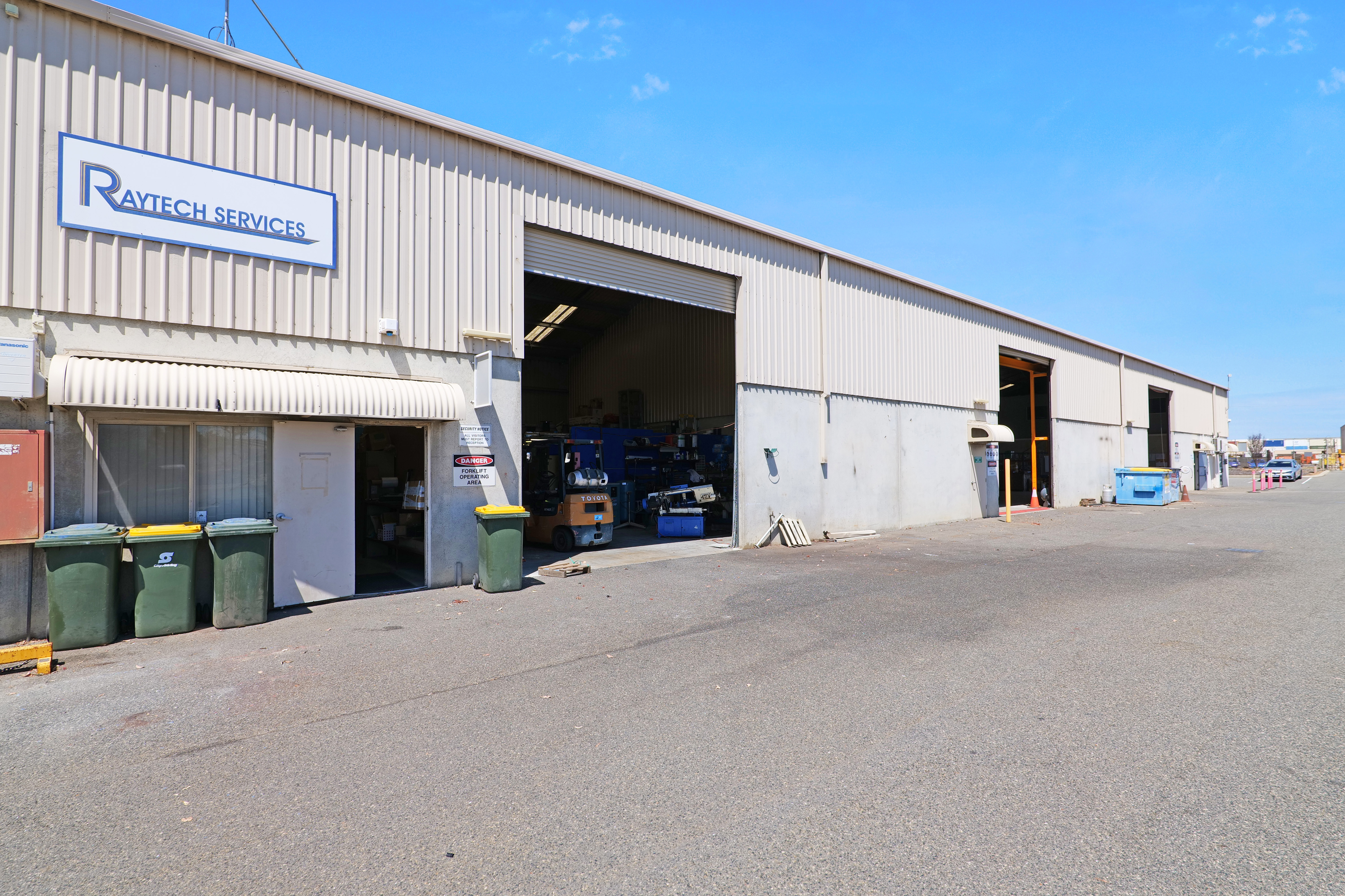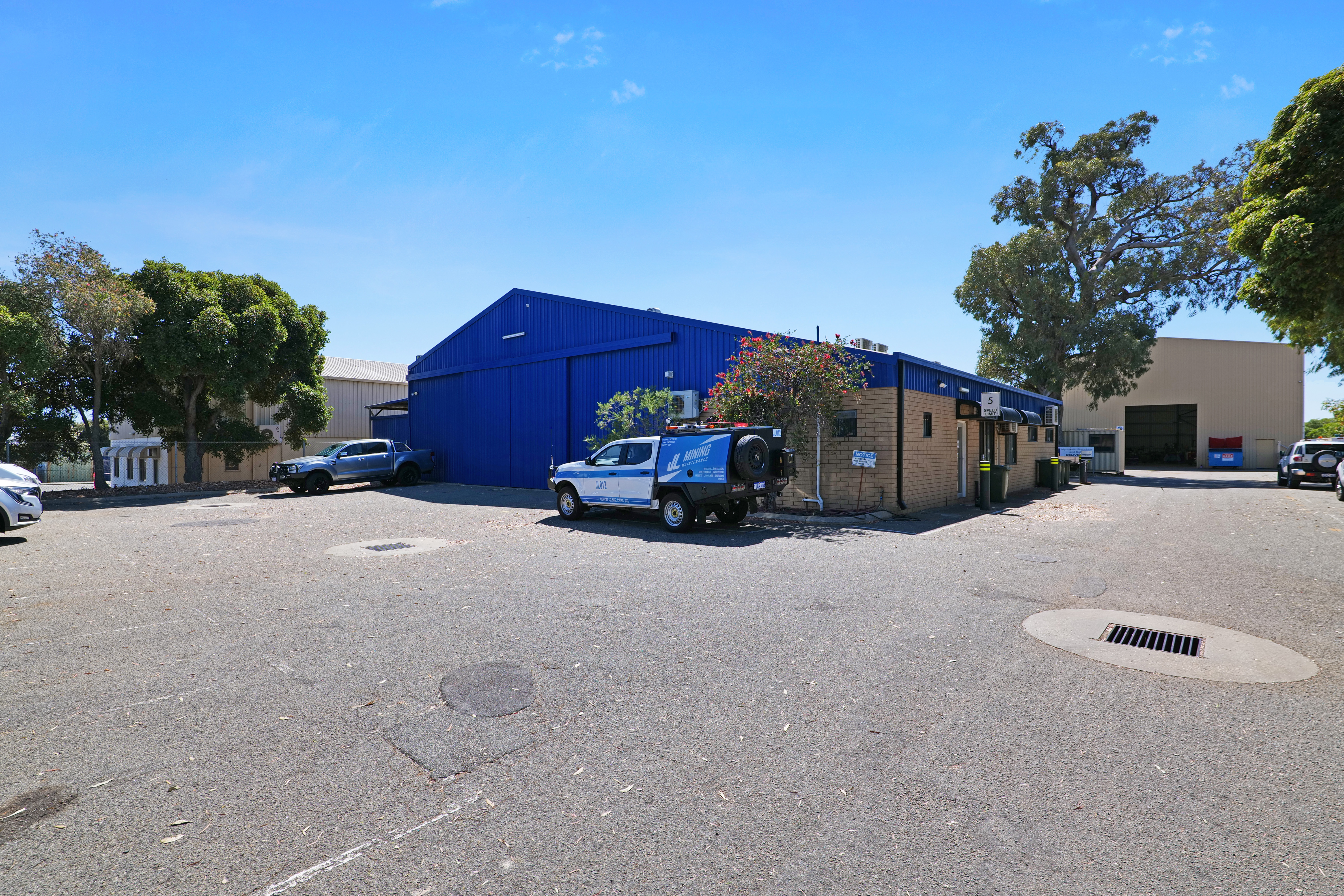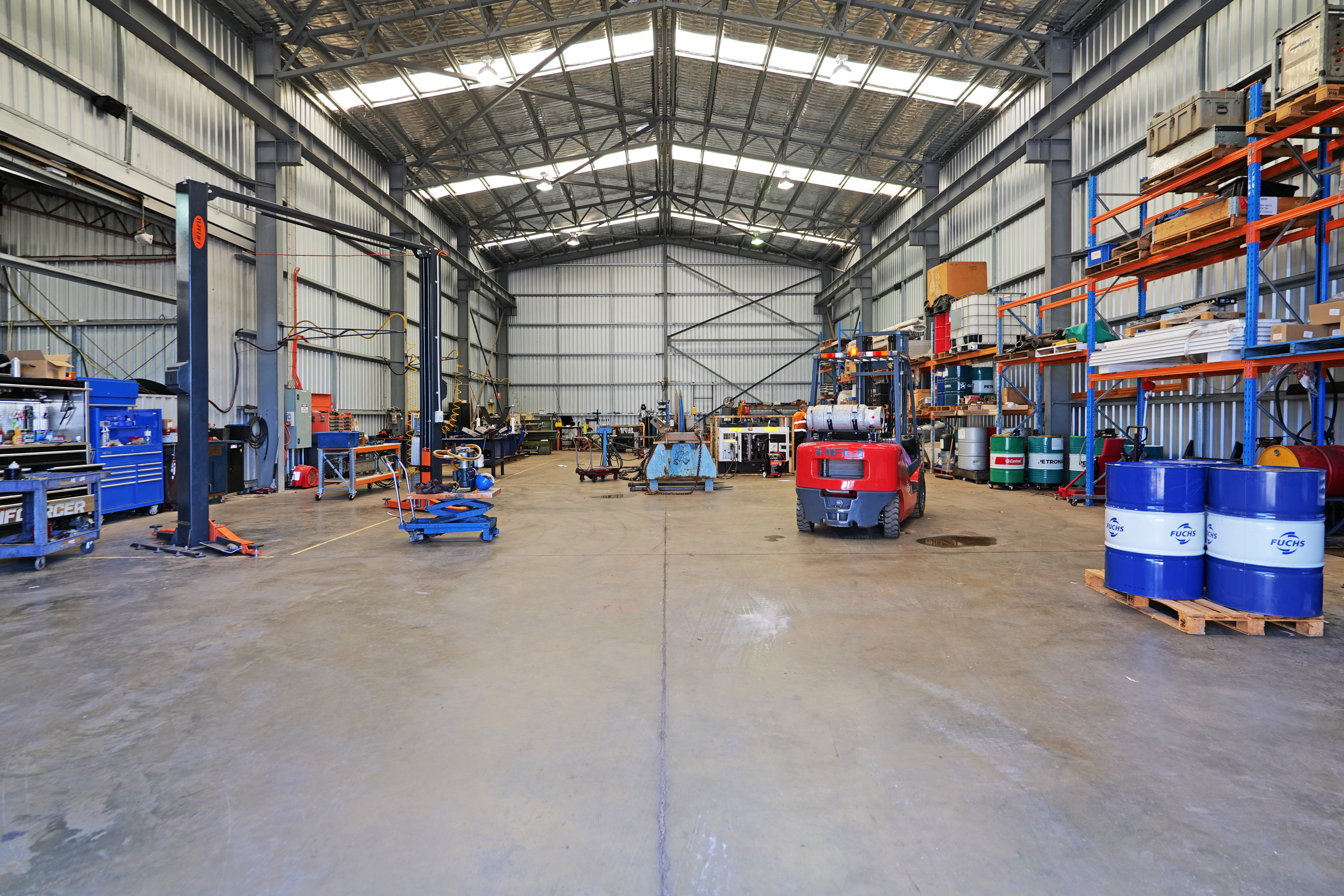 This area includes 3 separate units ranging in area of 255 sqm to 560 sqm. All constructed from concrete floors, concrete walls to dado height and metal clad walls.