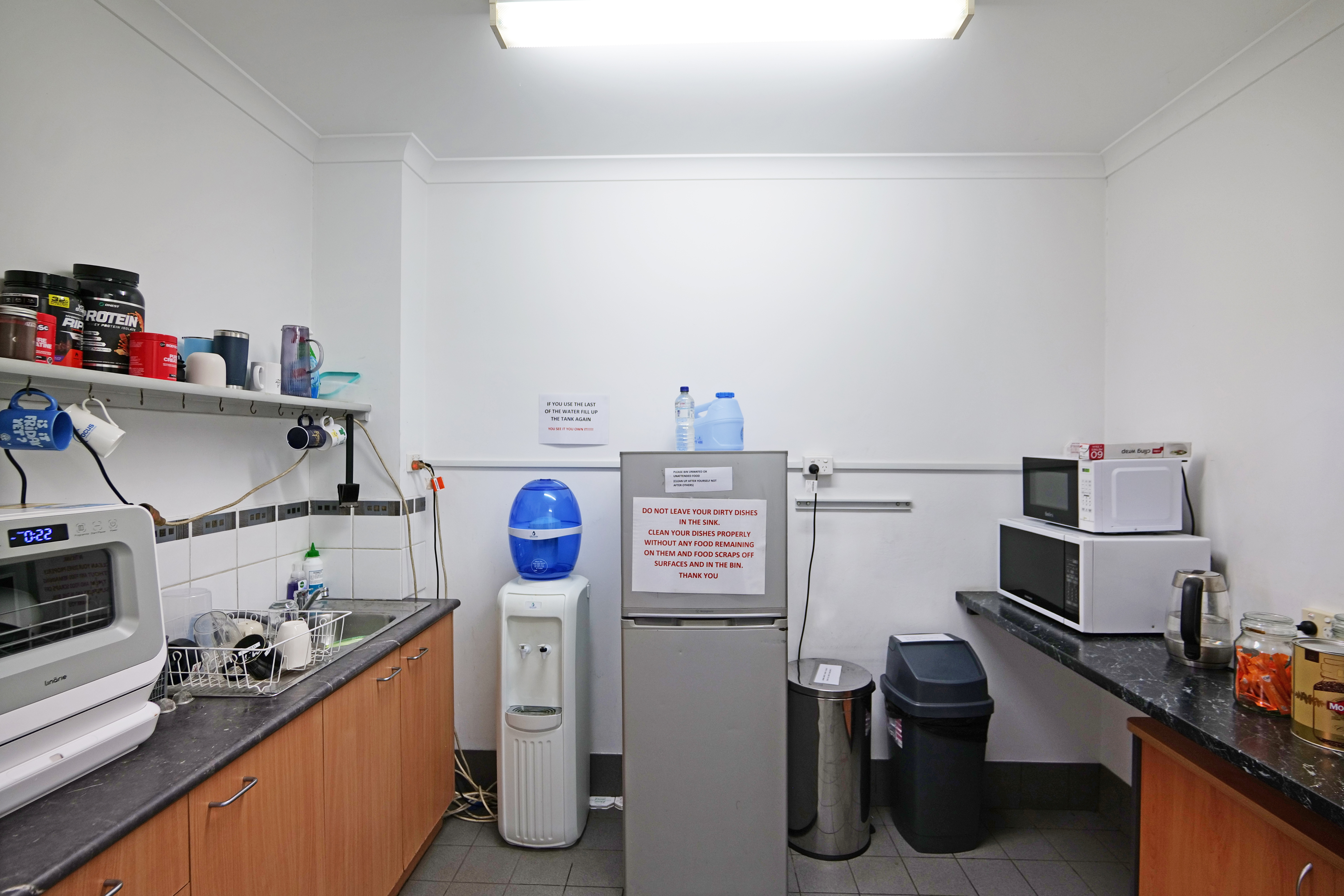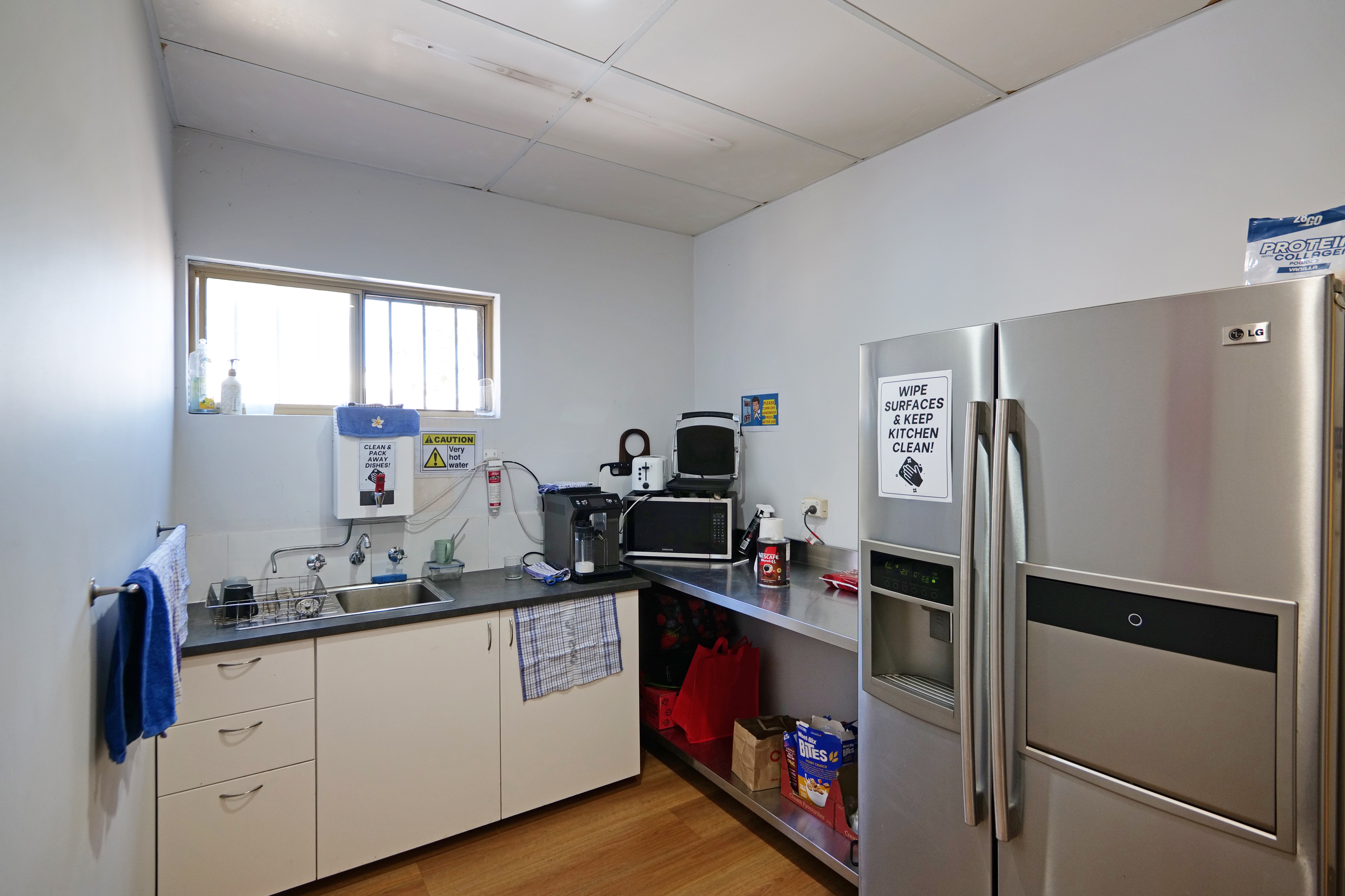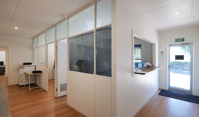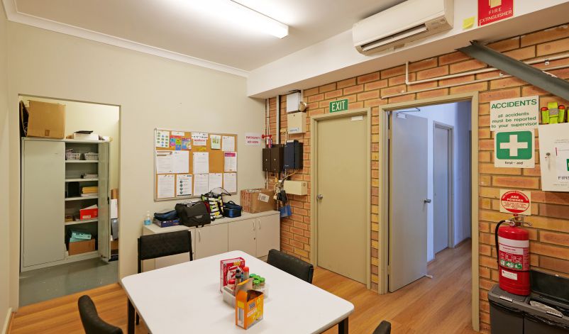 Towards the front of the development is an office area which includes brick walls, carpeted concrete floors and suspended ceiling. Fit out comprises of 4 large open plan office spaces with one separate partitioned office. Male and female toilets are included and constructed with brick walls and tiled floor with a shower.