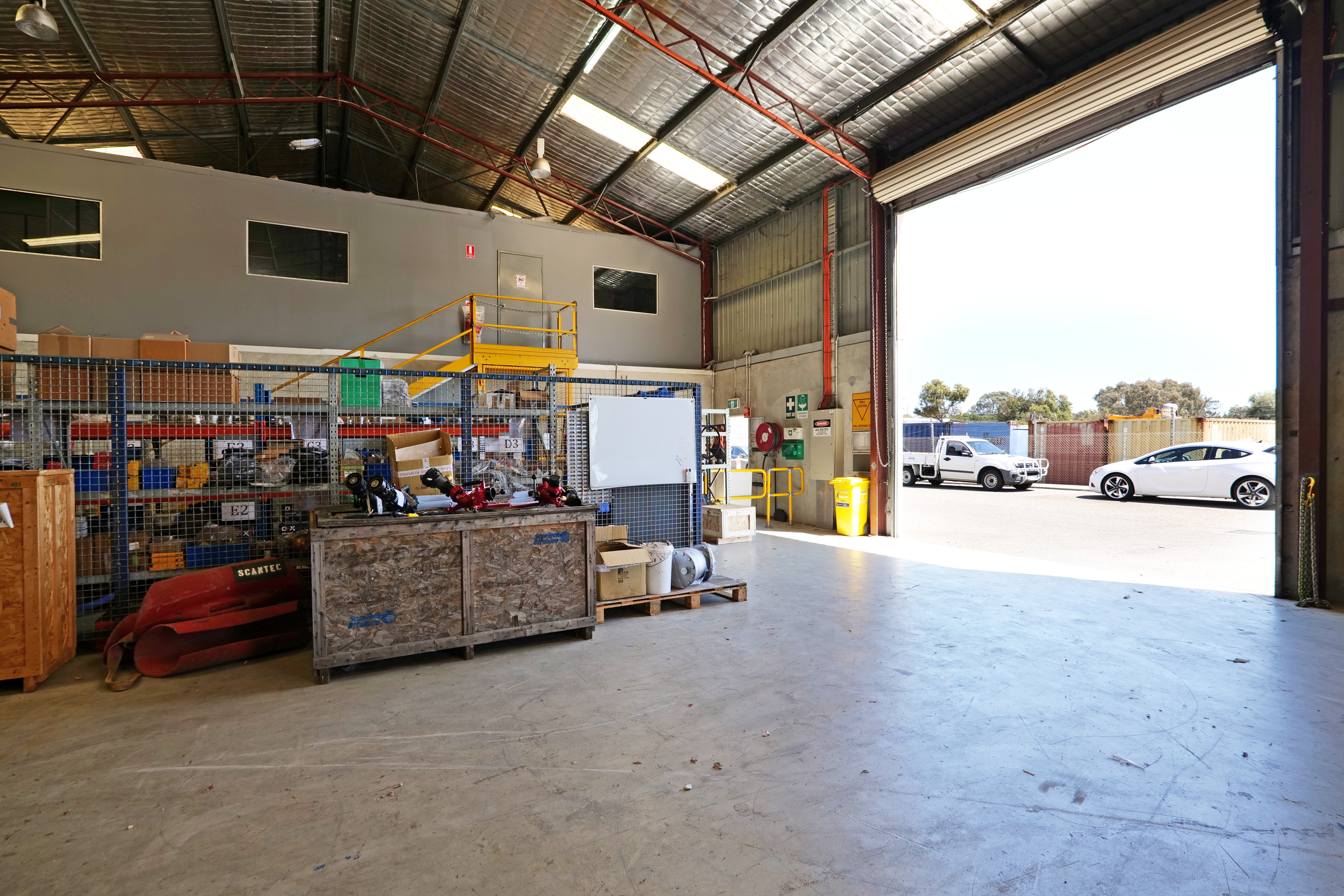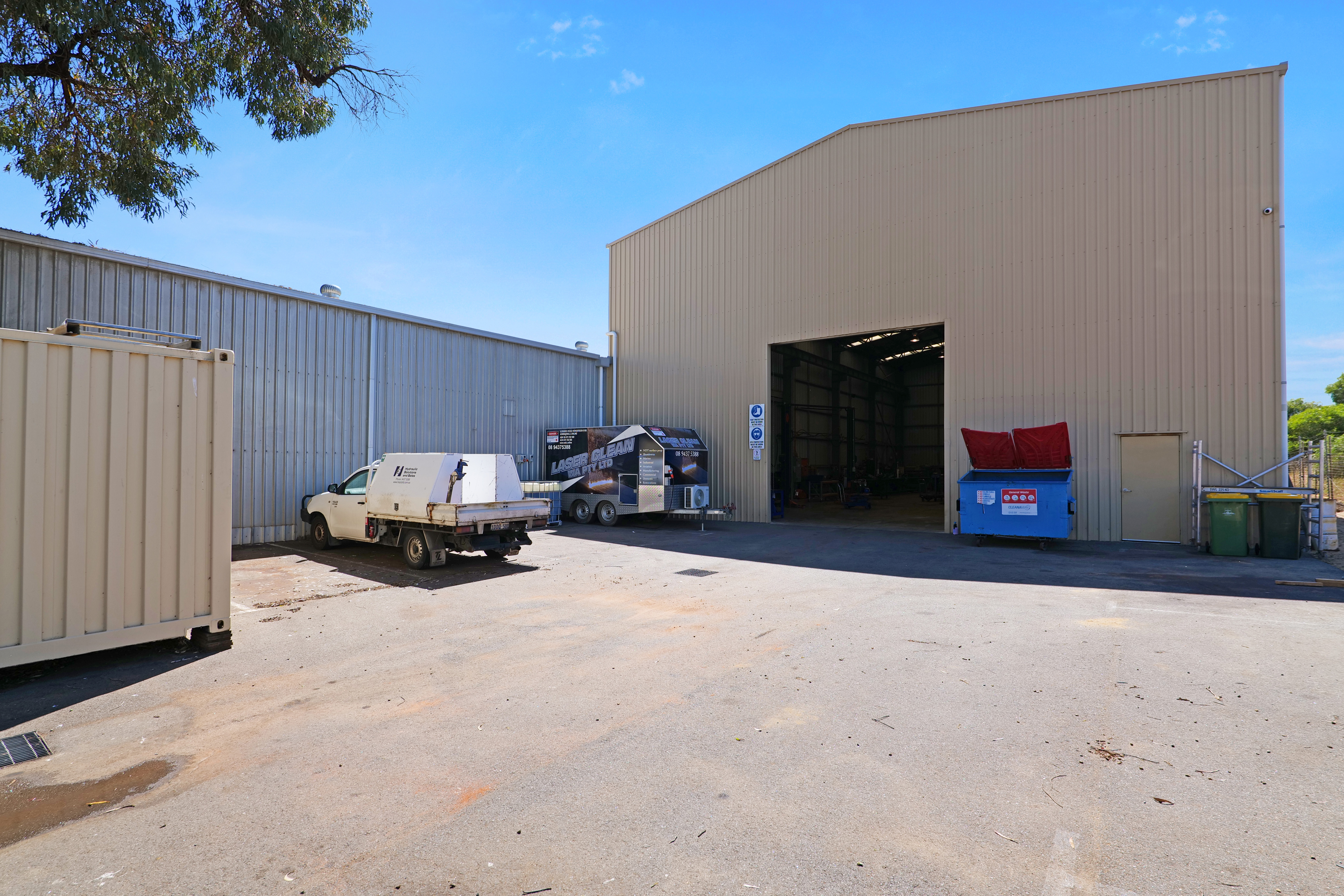 The area includes concrete floors, metal clad walls and metal roof. The warehouse facility has truss height of approximately 5.0 metres to the underside of the beams. The warehouse/workshop is accessible via a single sliding door at the front of the building and second roller door for access is located to the rear with a height of approximately 5.0 metres. Includes 3-phase power throughout the