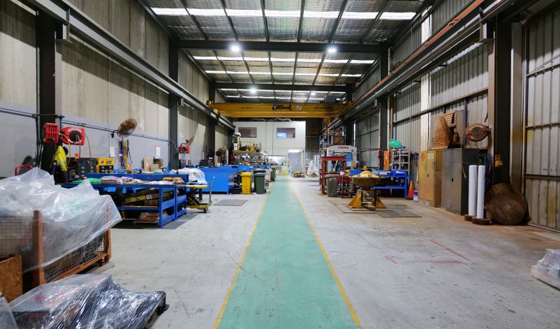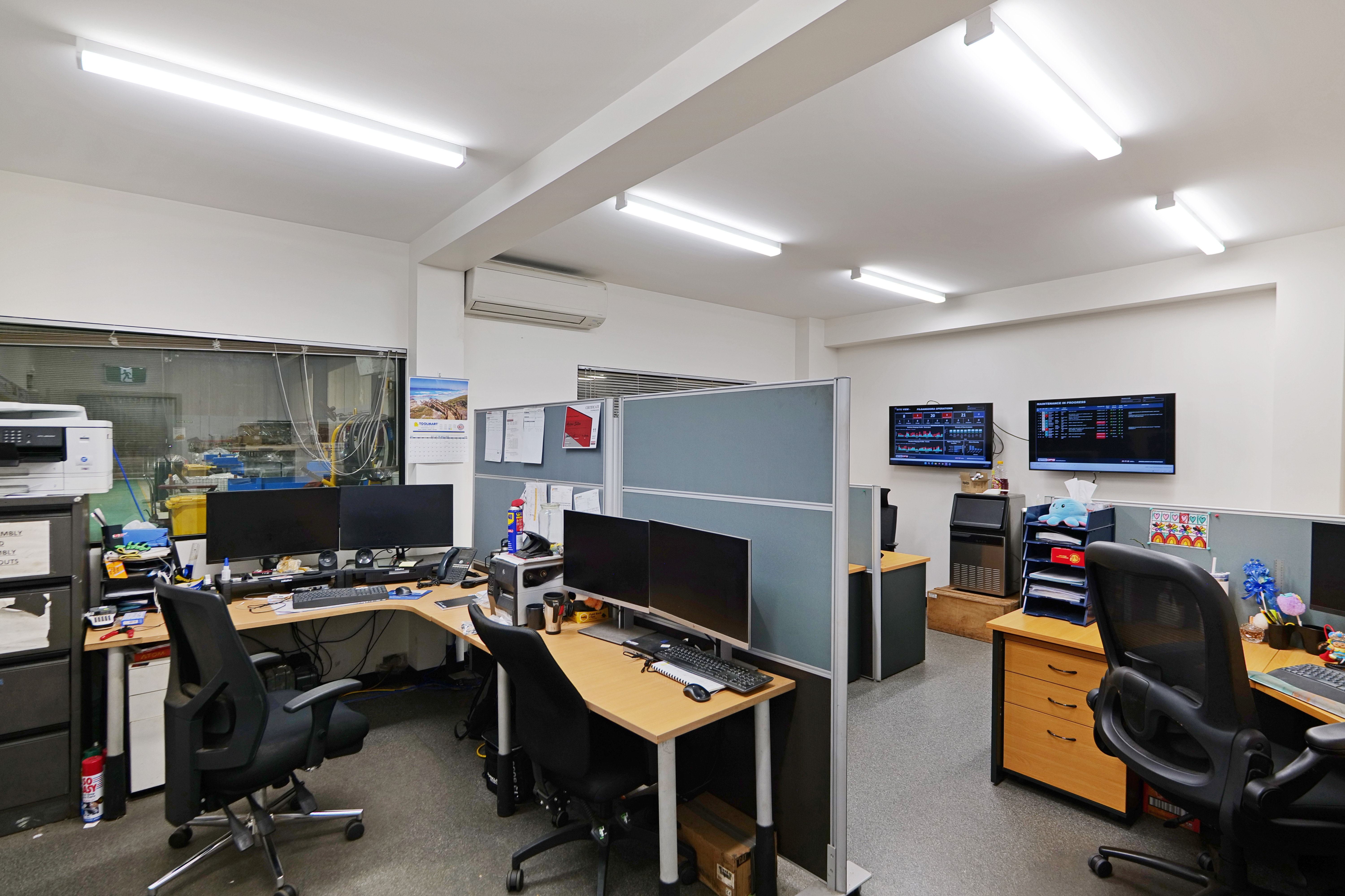 Situated at the rear of the lot, the office comprises 717 sqm over two-levels, featuring a combination of open plan and partitioned offices. A reception area is present on the ground floor, along with two boardrooms, toilets and multiple cubicles. The first floor also comprises open plan accommodation and multiple cubicles. A kitchenette with lunchroom is present as well as multiple toilets. The workshop is located at the front of the development and has access via a front roller door which is approximately 5.9m wide and 5m high and a side sliding door which is circa 7.3m wide by 4.75m high. A 10t Gantry crane can travel the length of the workshop. Air lines and power are throughout the workshop which is also clear-span. Further features include: