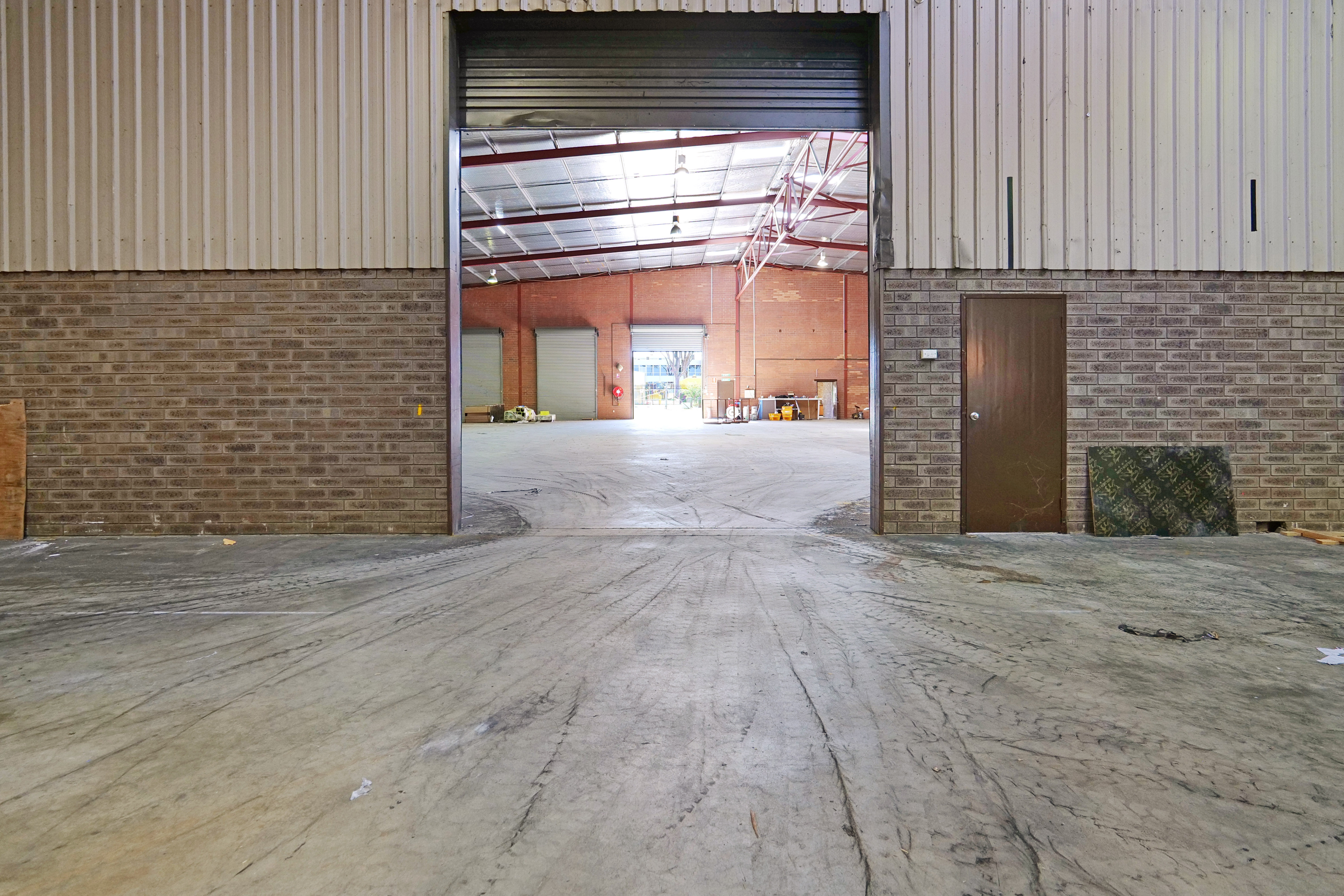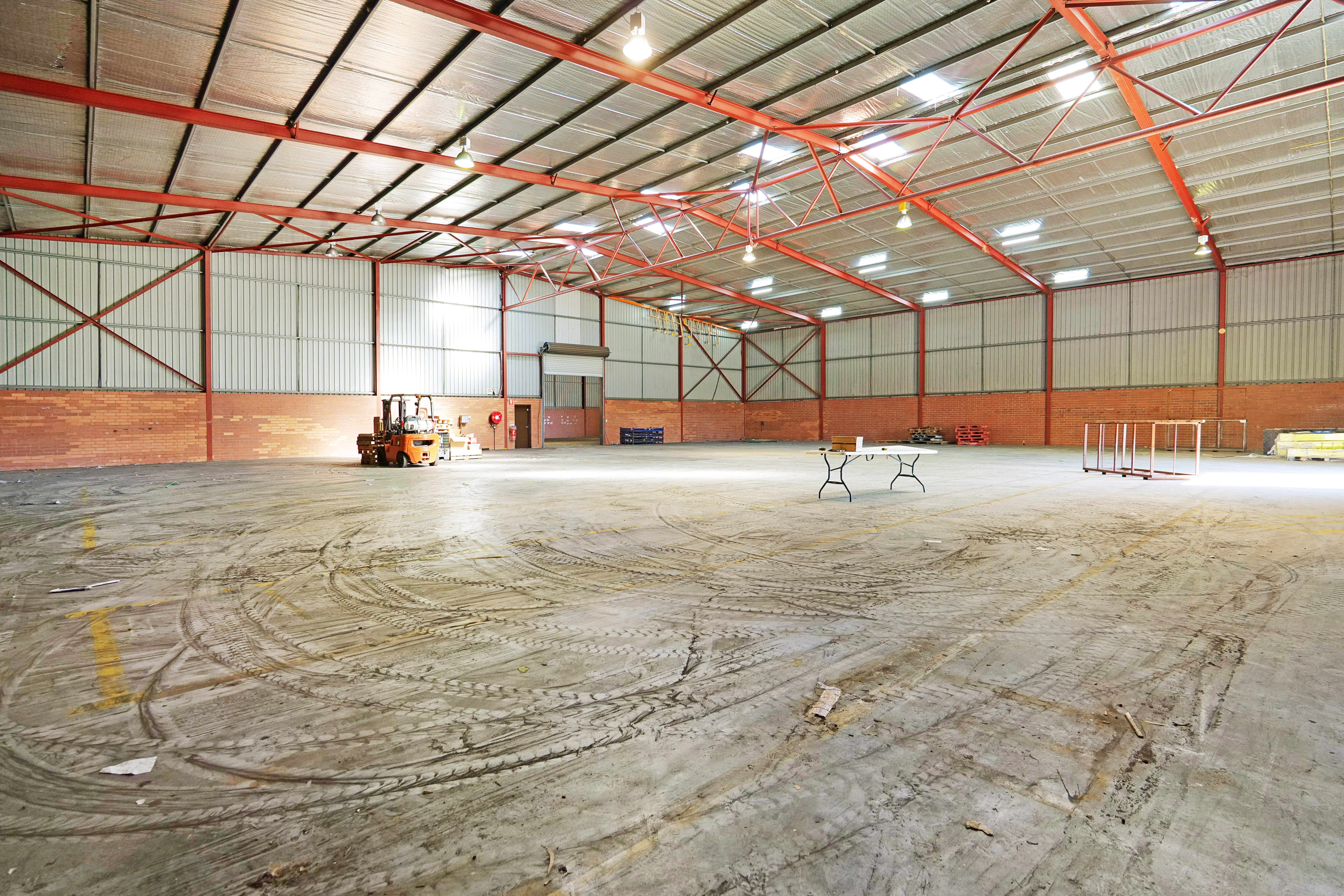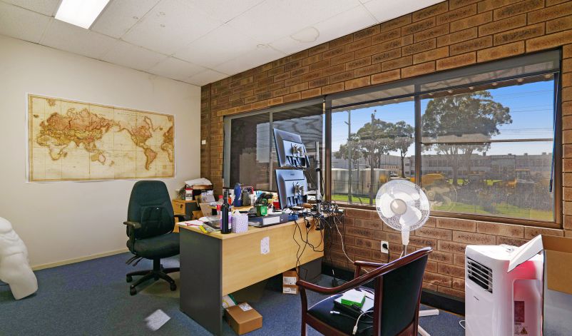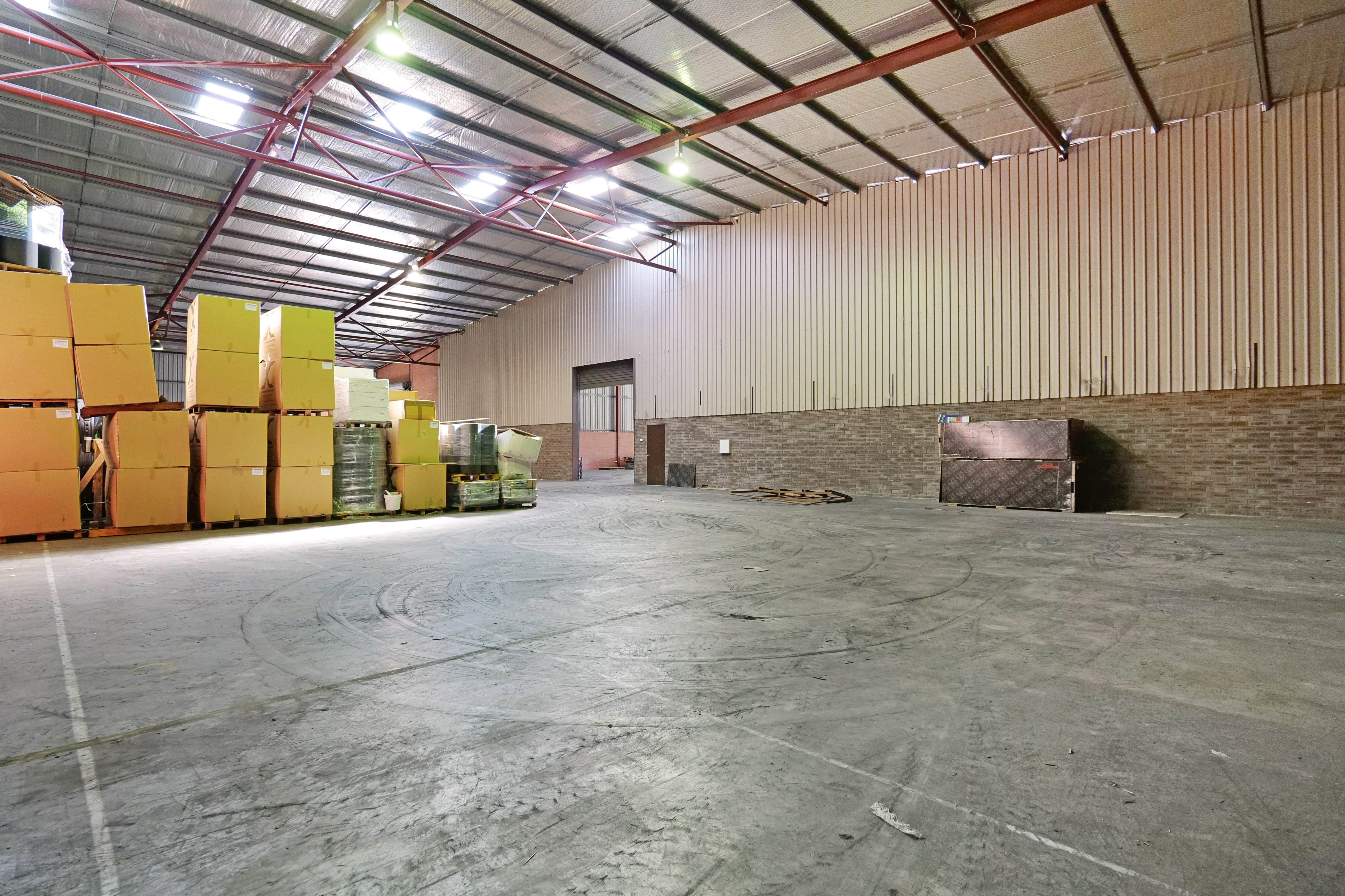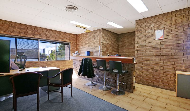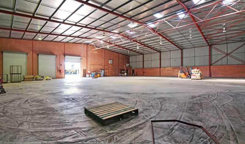 The warehouse is in two sections and is of steel framed construction with a concrete floor, brick walls to a height of 3 metres with the balance being Colorbond to a height of 7.0 metres. The roof is insulated and metal clad. Lighting is provided by a small number of translucent sheets and high bay and fluorescent lights. Access is excellent via large roller doors on the northern elevation of both sections. Access to the warehouse is via two roller doors on the front elevation, on being on-grade whilst the second contained in a recessed loading dock, the roller doors are side-by-side. The front warehouse is around 1,057 sqm while the second section of warehouse at the rear is approximately 782 sqm. A 3.6m wide roller door separates each warehouse component. Max truss height of each warehouse is 6.5m.