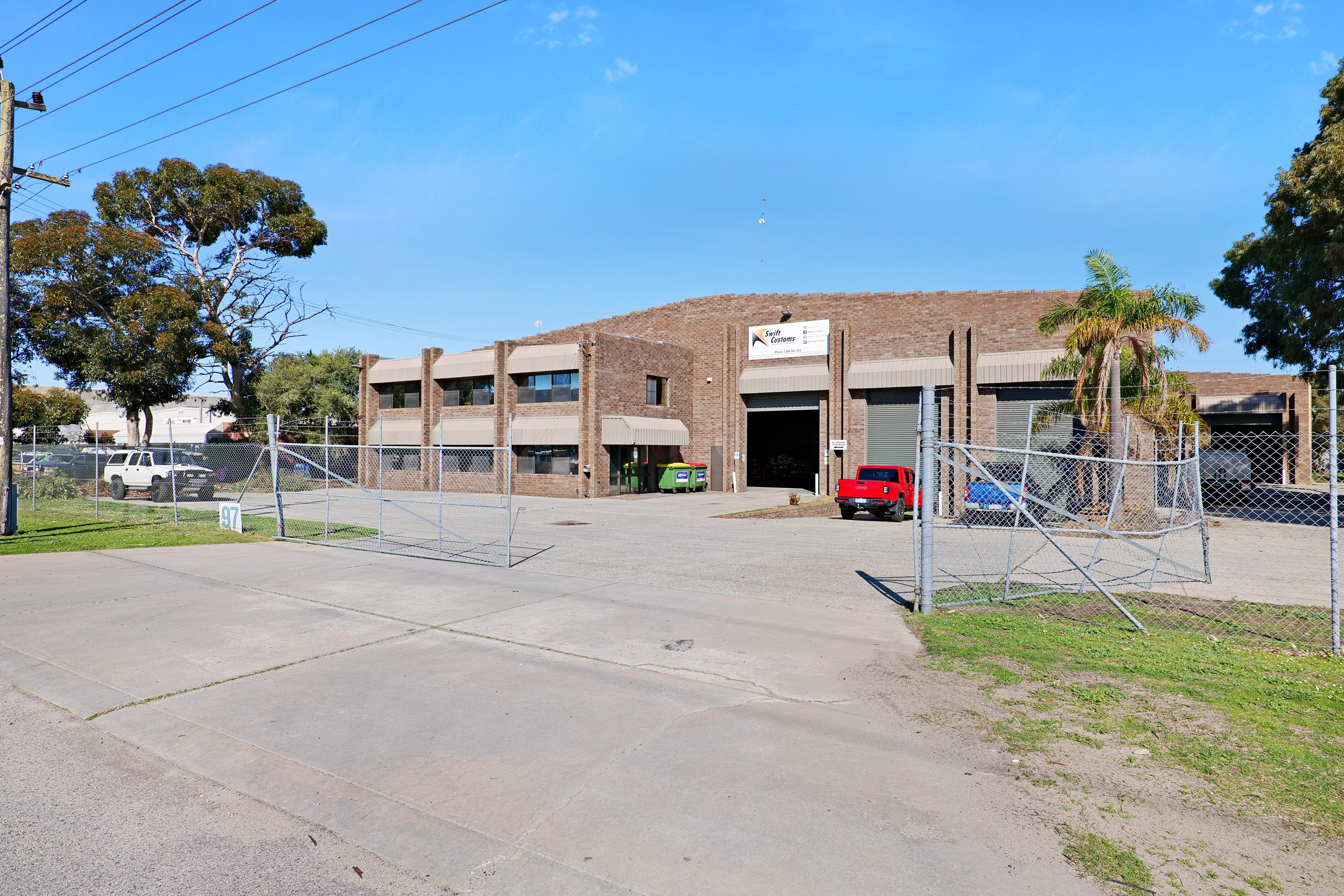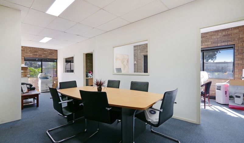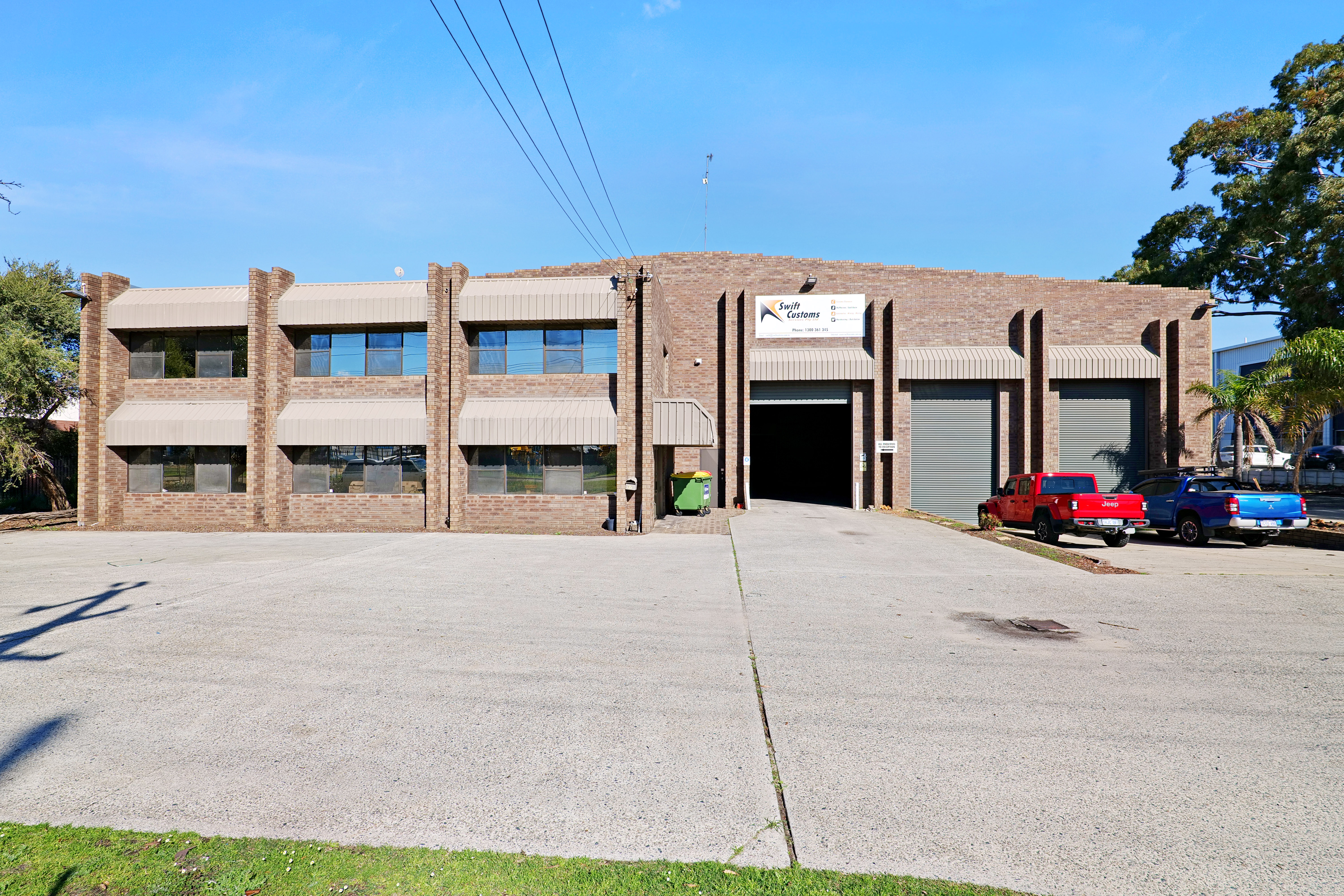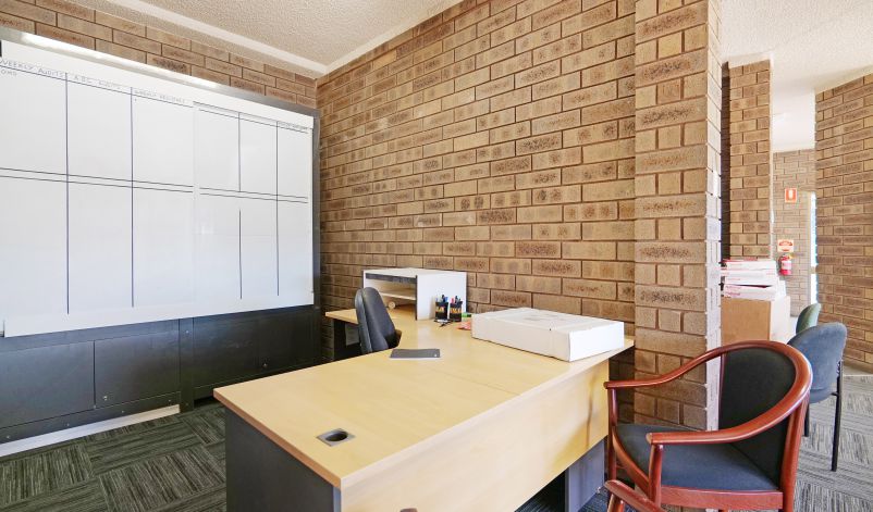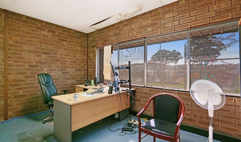 The warehouse is in two sections and is of steel framed construction with a concrete floor, brick walls to a height of 3 metres with the balance being Colorbond to a height of 7.0 metres. The roof is insulated and metal clad. Lighting is provided by a small number of translucent sheets and high bay and fluorescent lights. Access is excellent via large roller doors on the northern elevation of both sections. Access to the warehouse is via two roller doors on the front elevation, on being on-grade whilst the second contained in a recessed loading dock, the roller doors are side-by-side. The front warehouse is around 1,057 sqm while the second section of warehouse at the rear is approximately 782 sqm. A 3.6m wide roller door separates each warehouse component. Max truss height of each warehouse is 6.5m.