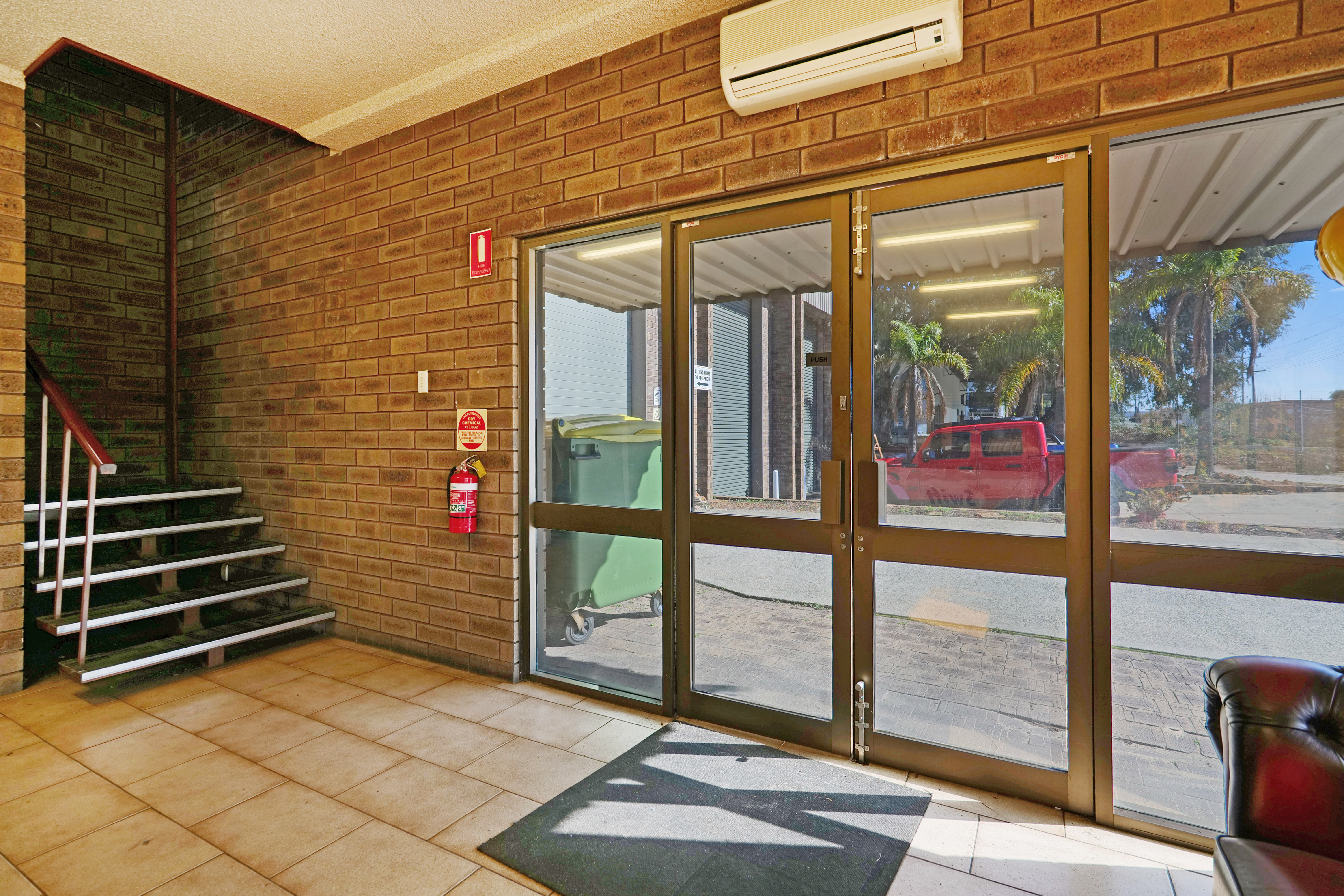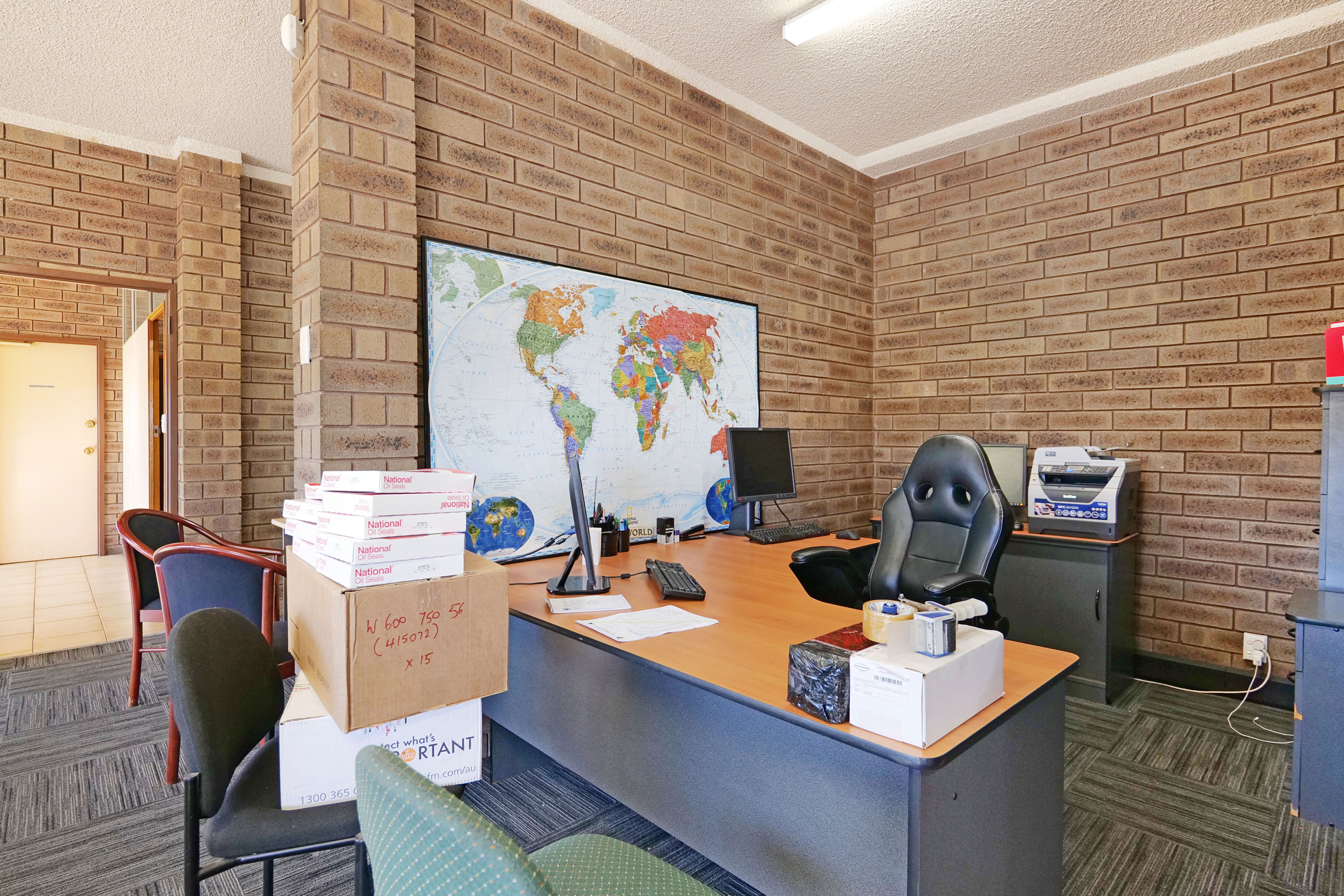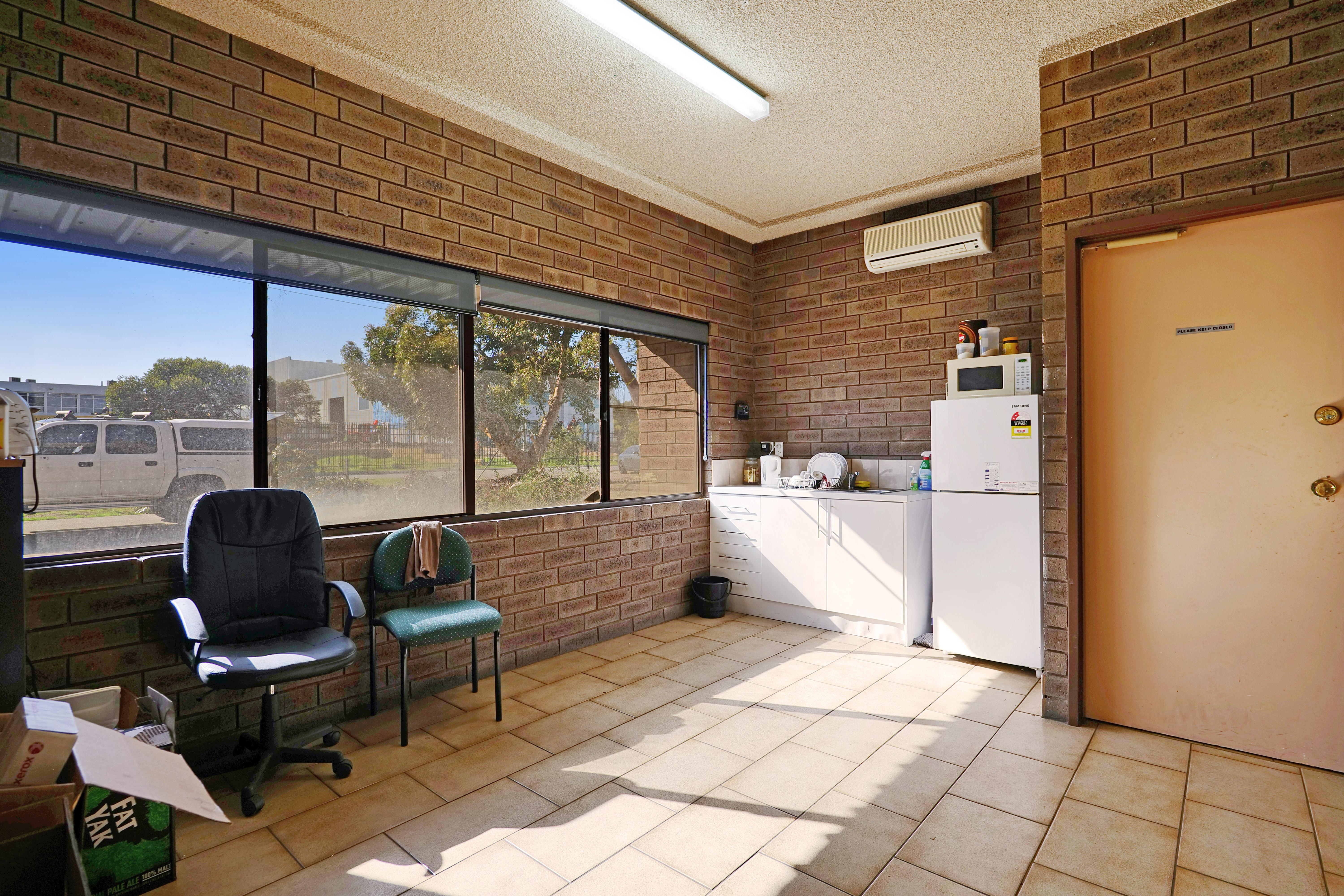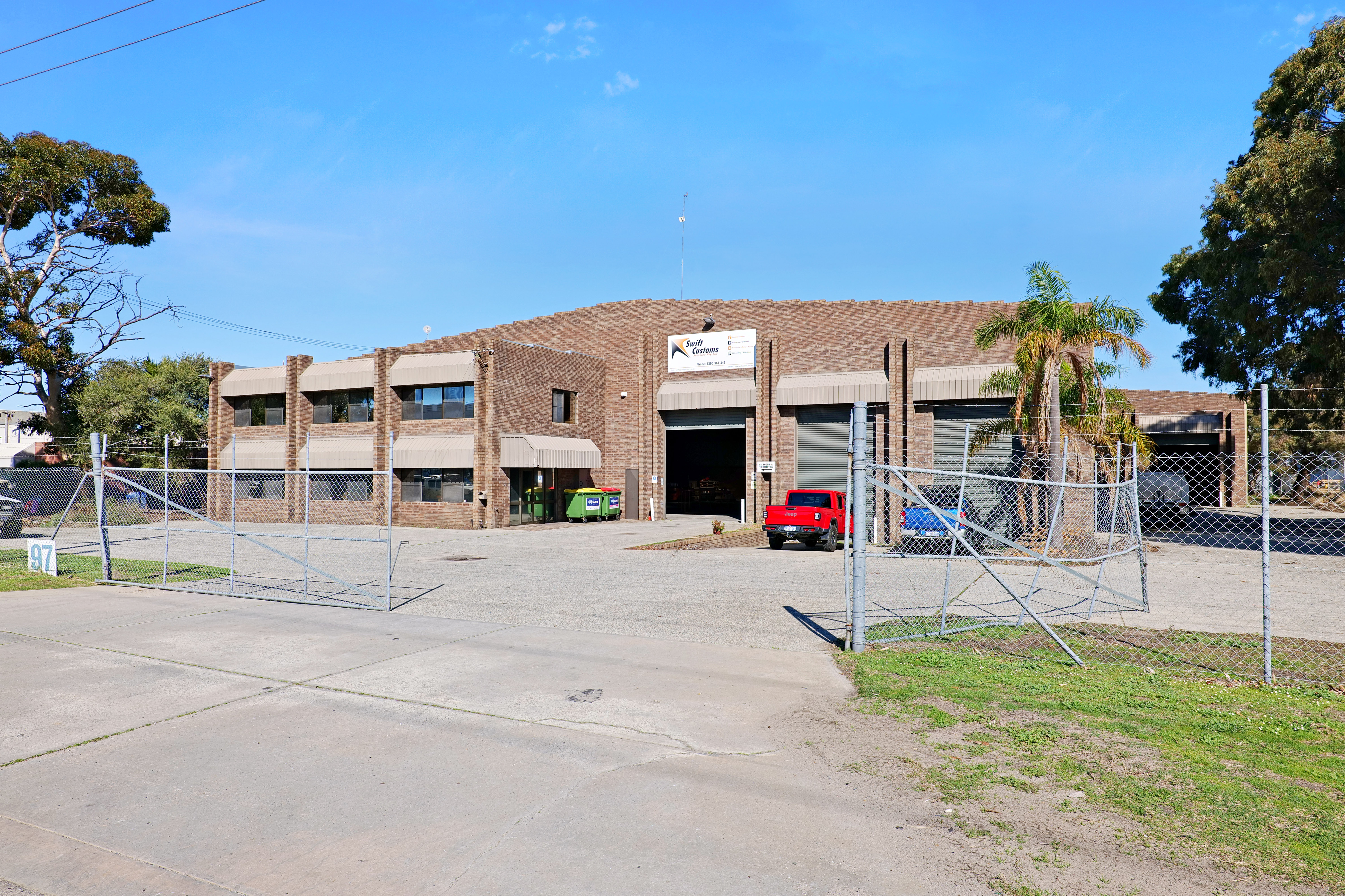 The warehouse is in two sections and is of steel framed construction with a concrete floor, brick walls to a height of 3 metres with the balance being Colorbond to a height of 7.0 metres. The roof is insulated and metal clad. Lighting is provided by a small number of translucent sheets and high bay and fluorescent lights. Access is excellent via large roller doors on the northern elevation of both sections. Access to the warehouse is via two roller doors on the front elevation, on being on-grade whilst the second contained in a recessed loading dock, the roller doors are side-by-side. The front warehouse is around 1,057 sqm while the second section of warehouse at the rear is approximately 782 sqm. A 3.6m wide roller door separates each warehouse component. Max truss height of each warehouse is 6.5m.