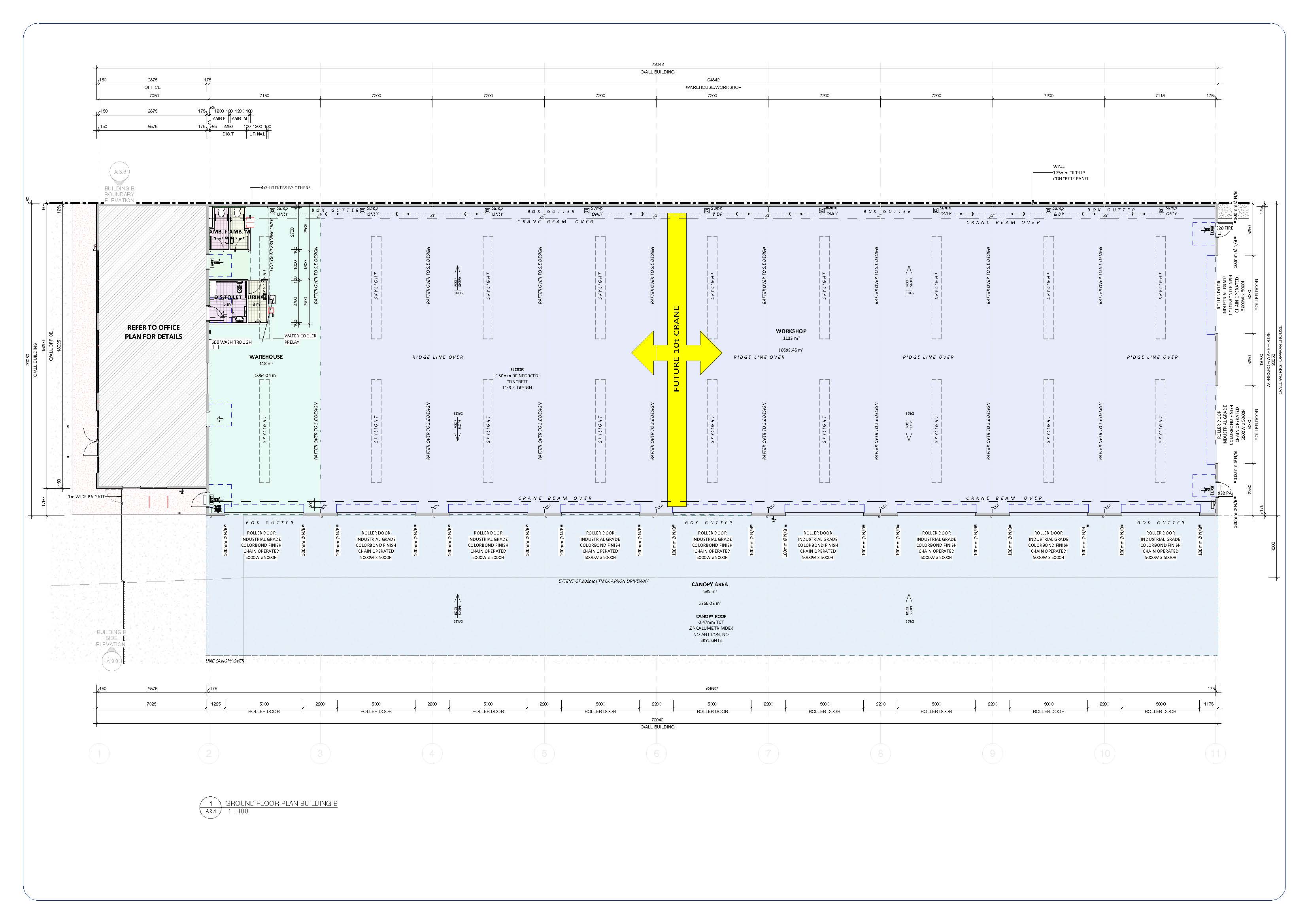 Situated at the front of the development, the office accommodation spans some 242 sqm and will be built over two levels. The fit out will include carpet floor coverings, ceiling tiles with recessed lights, air conditioning and internal painted walls. Directly behind the office will be the workshop/warehouse, comprising some 1,251 sqm of GLA with an approximate truss height of 9.35m. The workshop will include a three-phase power supply plus Gantry Crane provisions for users requiring a Gantry Crane. Further features include but are not limited to:
