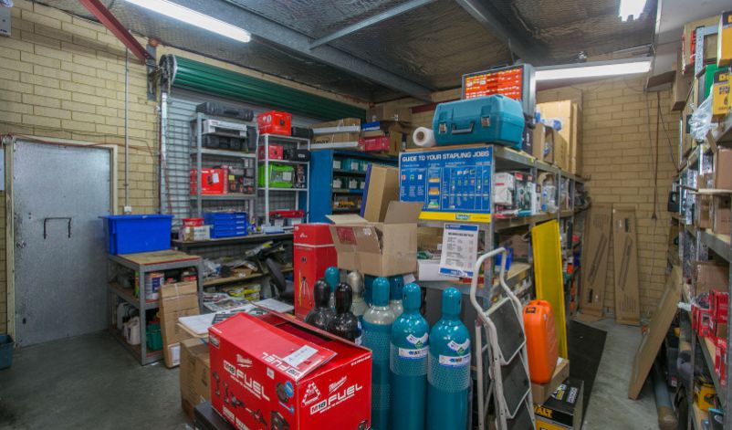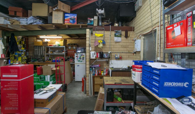 The building is comprised of brick & steel elevations with a rear roller door for goods access.