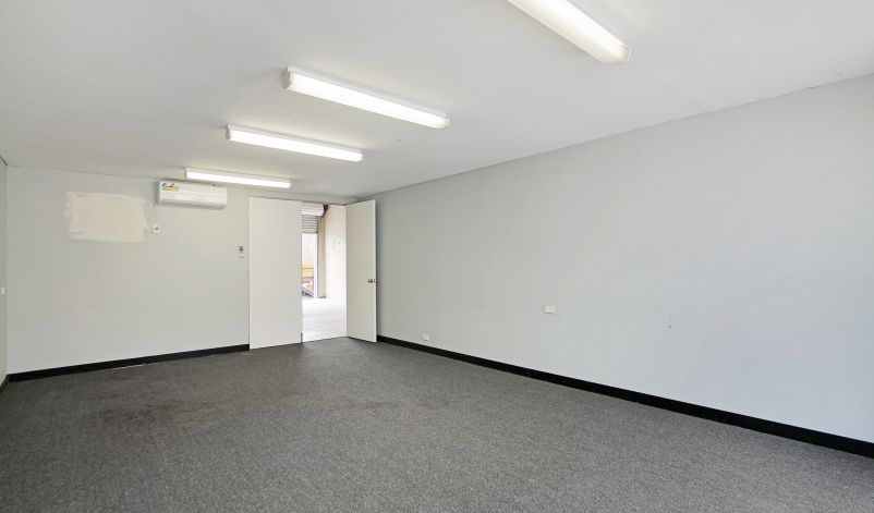To the rear of the office is the factory space constructed with brick elevations, concrete floors and iron roof. Access is via a single roller door at the front elevation while access to the yard can be gained from within the unit via a second roller door and through a gate at the rear of the unit.