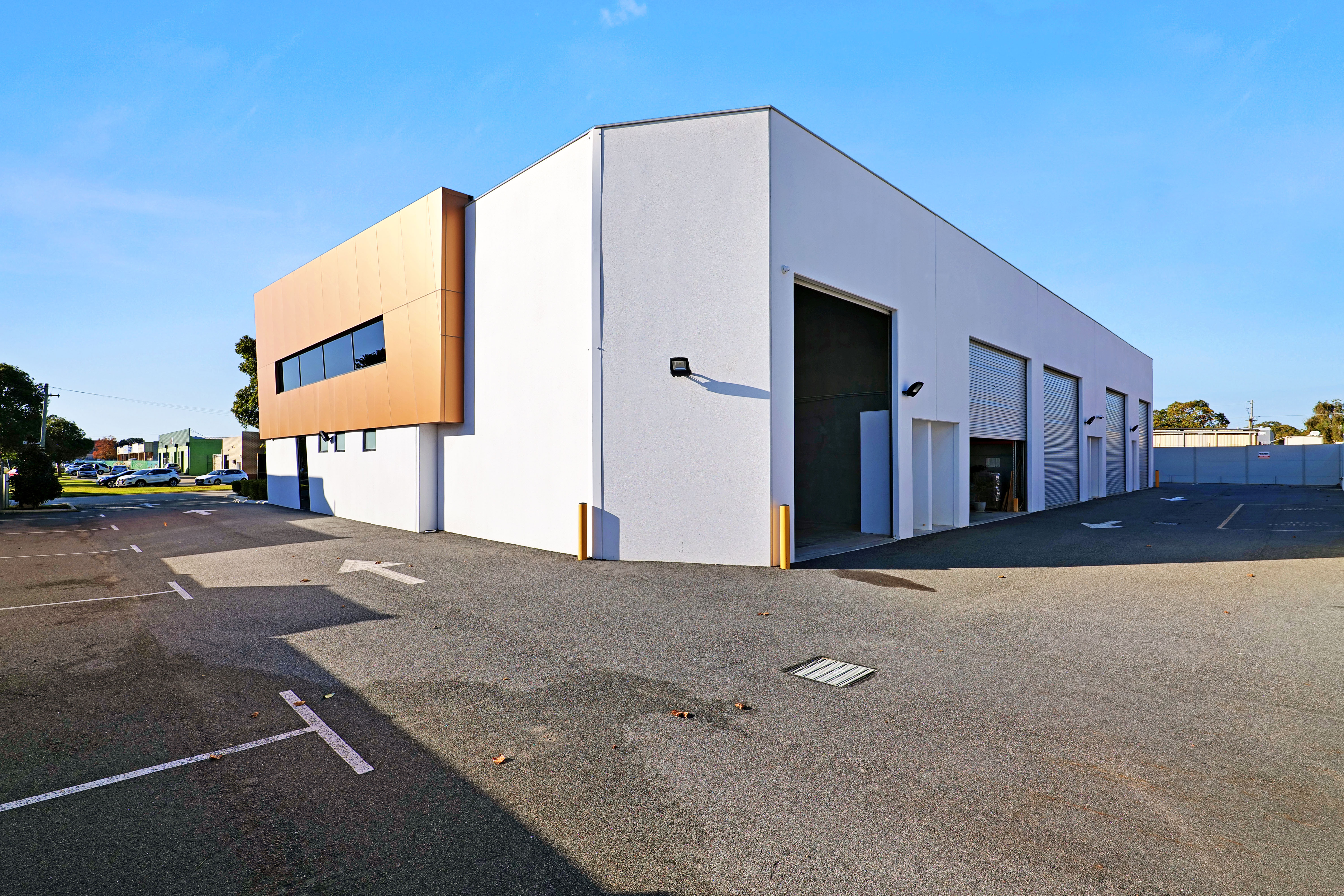 Office to the front of the units have a glass fascia and shop front windows. Access to the office is via a single door. The office has been fitted with suspended ceilings and recessed lights, reverse cycle air conditioning and painted walls, hot water, disabled toilets and communal security system. Total areas for the office are approximately 106 sqm upper level and 106 sqm inclusive of amenities on the ground floor. The warehouse is 52 sqm approximately and include roller door access from the rear, good high truss height of 6.5 metres, insulated ceilings, mercury vapor lights.